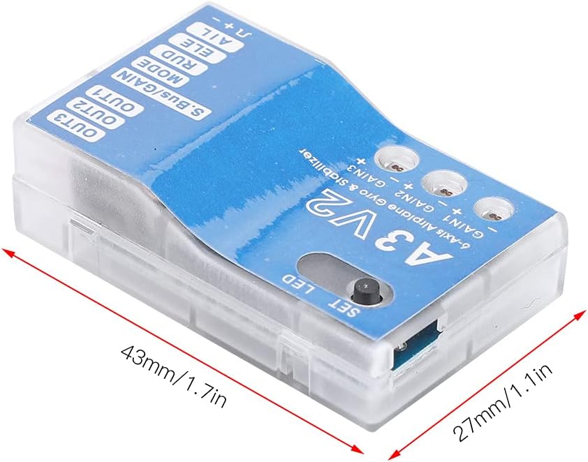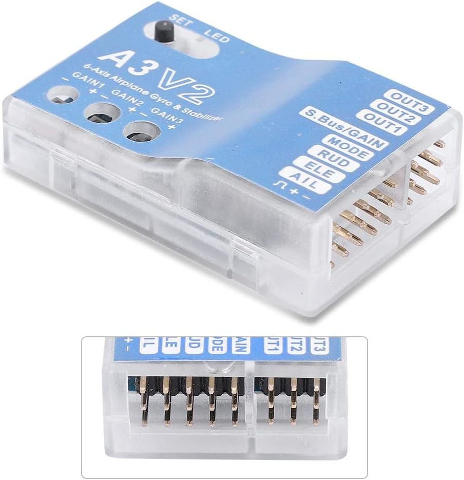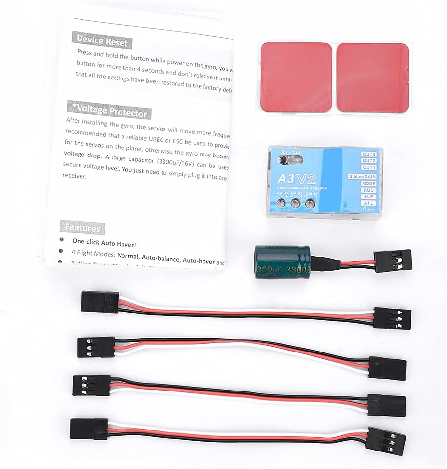 الميزات. يمكن تحقيق التحليق التلقائي بمفتاح واحد. أربعة أوضاع طيران: عادي، توازن تلقائي، وضع التحليق التلقائي وإيقاف الجيروسكوب. ثلاثة أنواع من الأجنحة: جناح قياسي، جناح دلتا (جناح طائر) وذيل على شكل حرف V. ثلاثة ترددات تشغيل للمؤازرة: 50 هرتز و125 هرتز و250 هرتز. كل وضع طيران له تعديل كسب مستقل وتمركز هزاز تلقائي. يدعم الجهد العالي (7). .4) تشغيل فولت العمر. يدعم فوتابا اس باص/اس باص 2. سهل الاستخدام ومناسب للغاية للمبتدئين.