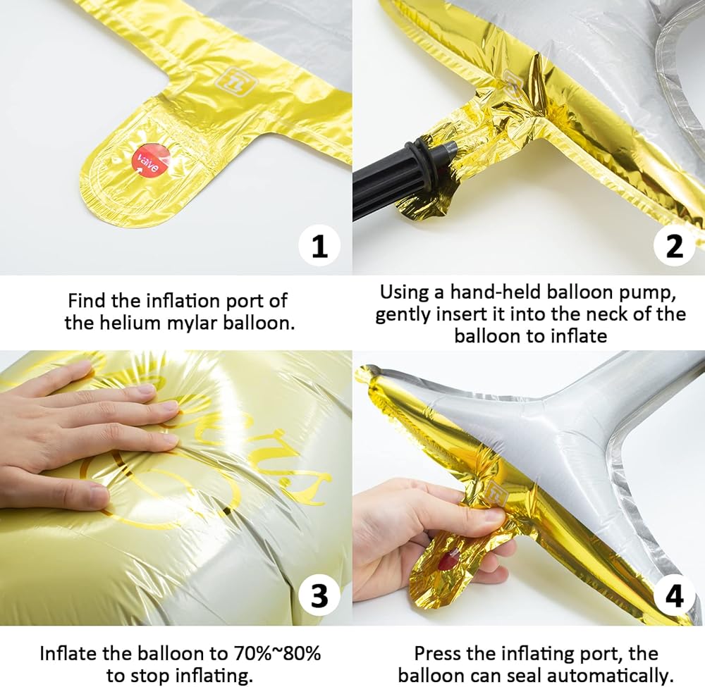 【How To Use】Large mylar foil helium balloons can be inflated using a straw or a small hand pump, pinch the end to seal. Do not fill with too much gas. You can choose to fill it with hydrogen or helium so it floats in the air, or it can be filled with air but not float. You can choose according to your needs.