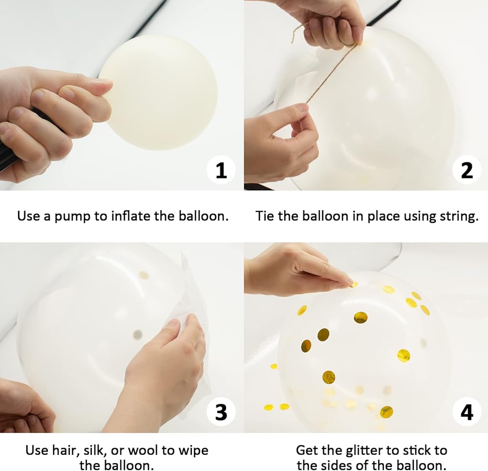 Shake the gold glitter and dab the balloon with hair, silk or wool. The sequins will stick to the sides of the balloon due to friction, making the balloon look prettier.