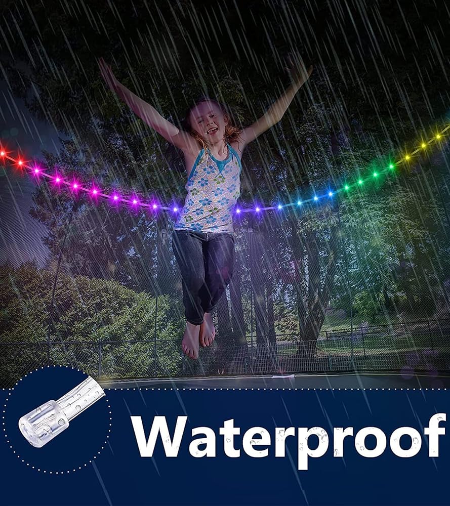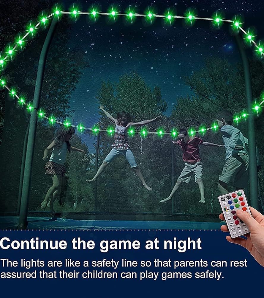 • 【تعزيز السلامة】- يمكن للأضواء الساطعة أن تعزز الرؤية الليلية وتساعد أطفالك على رؤية حواف ونوابض الترامبولين بسهولة، وبالتالي تجنب الإصابة. كما أنها تضيف المزيد من المرح والترفيه إلى تجربة الترامبولين للأطفال.