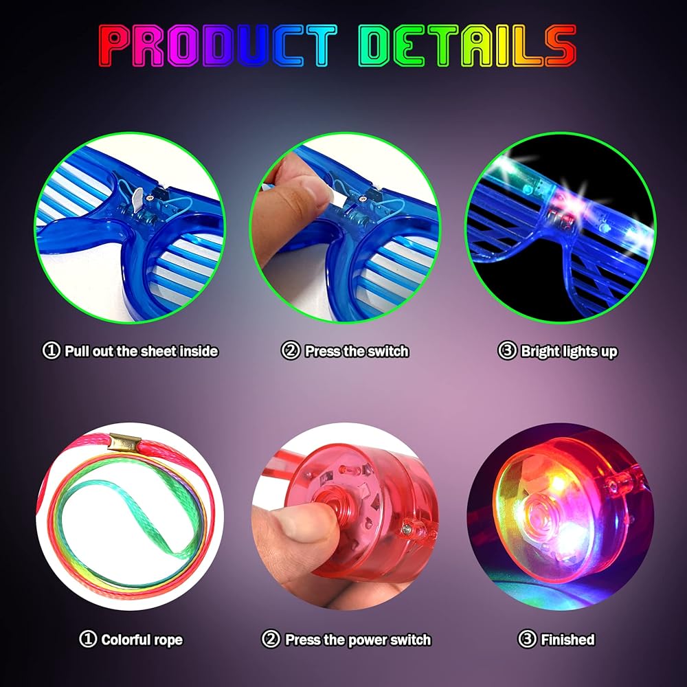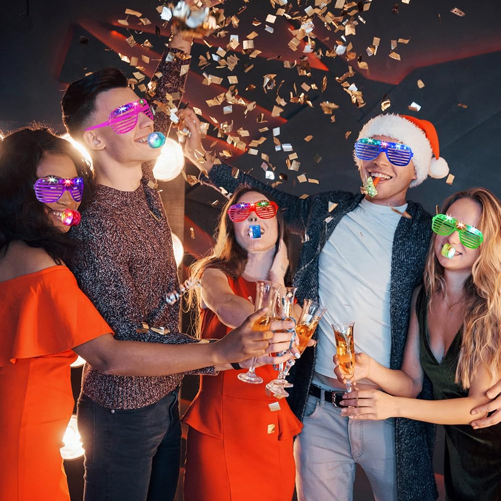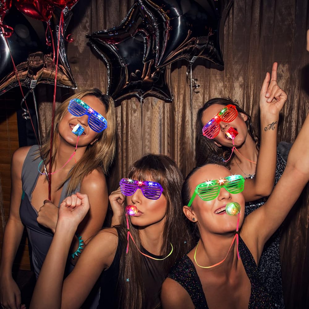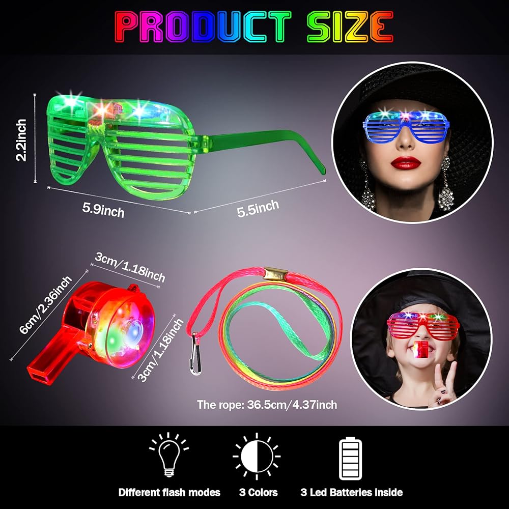تتميز بتصميم مظلل الغالق لنظارات LED وأضواء نيون ريترو للصفارات، أنيقة وشعبية، إنها ألعاب رائعة لإضاءة جو حفلتك بشكل أفضل.