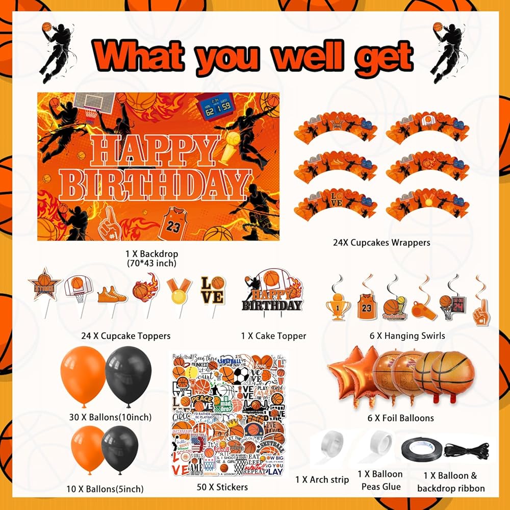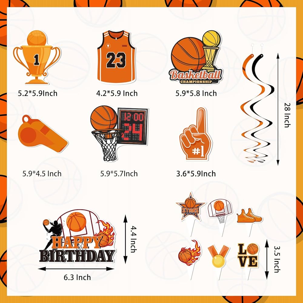 • مصممة للمعجبين: ديكورات عيد ميلاد كرة السلة هذه مثالية لحفلة كرة السلة، والحفلات التي تحمل طابع كرة السلة، وحفلات كرة السلة الرياضية، وما إلى ذلك.