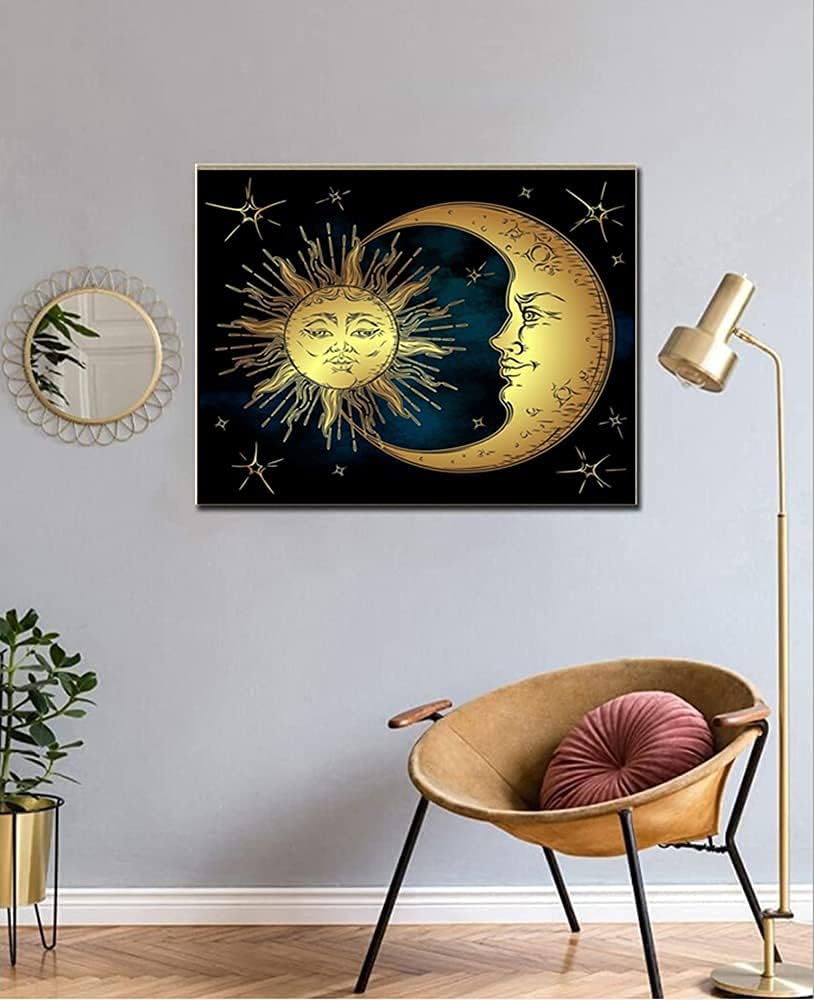 اف-كانلان مجموعة لوحة ماسية دائرية كاملة الحفر 5 دي بتصميم وجه الشمس والقمر مع الماس للشمس والقمر، لوحة فنية ماسية بالأرقام للمبتدئين، لوحة الماس مع ديكور غرفة جوهرة (16 × 12 انش)