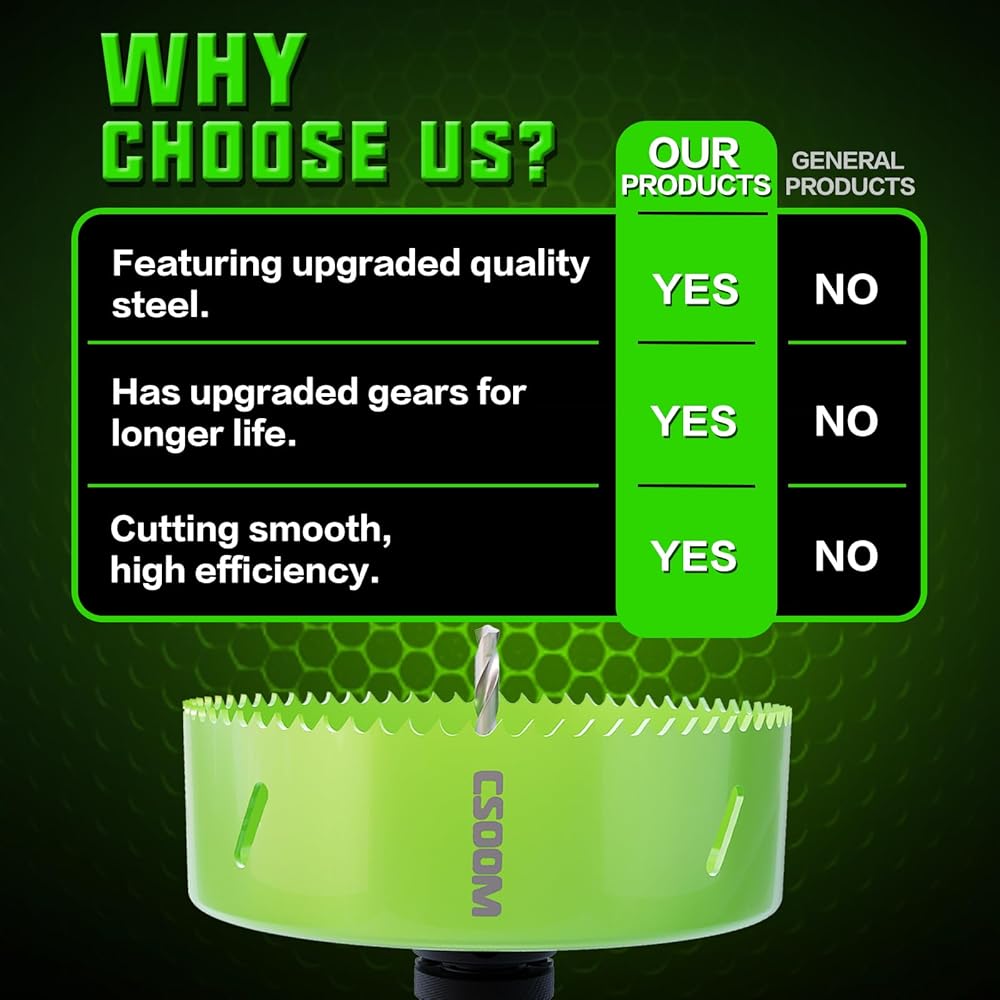 【ضمان الرضا بنسبة 100%】 في CSOOM، نحن نقف بجانب منتجاتنا ونؤمن بتقديم خدمة عملاء استثنائية. إذا لم تكن راضيًا، لأي سبب من الأسباب، عن منشار الثقب مقاس 152 مم | 6 بوصة، فيمكنك الاتصال بنا في أي وقت. نحن نقدر تعليقاتك ونستخدمها لتحسين منتجاتنا المصنوعة بدقة.