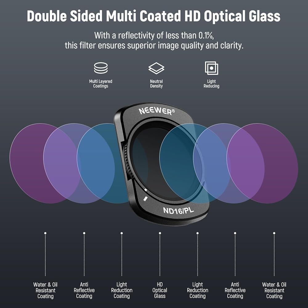 • 【زجاج بصري عالي الدقة متعدد الطبقات】 مع 30 طبقة من الطلاء متعدد الوظائف على جانبي الزجاج البصري عالي الدقة، فلاتر كاميرا الحركة المحمولة هذه طاردة للماء ومقاومة للخدش والزيت، مما يضمن جودة بصرية طويلة الأمد في البيئات الصعبة