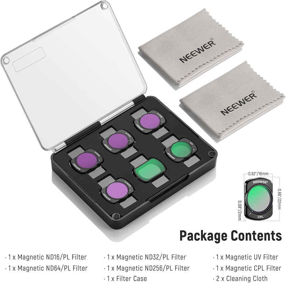 • 【إعادة إنتاج ألوان زاهية】 أضف حيوية إلى اللقطات الخاصة بك مع فلتر سي بي ال المتضمن. يساعد على تقليل الوهج والانعكاسات غير المرغوب فيها من الأسطح مثل الماء والزجاج والأشياء المعدنية، مما سيعزز لون ووضوح اللقطات الهوائية، مما يؤدي إلى صور أكثر وضوحًا وجاذبية