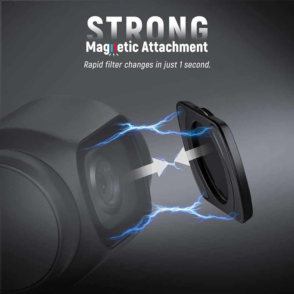 يضمن إطارها المغناطيسي الرفيع للغاية المصنوع من الألومنيوم متانة خفيفة الوزن، ويوفر تغييرات سريعة في الفلتر المغناطيسي لمدة ثانية واحدة مع التصميم المغناطيسي الآمن الذي يناسب جيمبال بسلاسة دون التأثير على المعايرة أو التخزين.