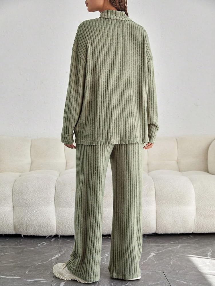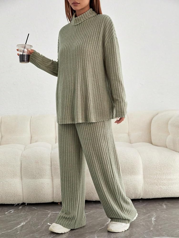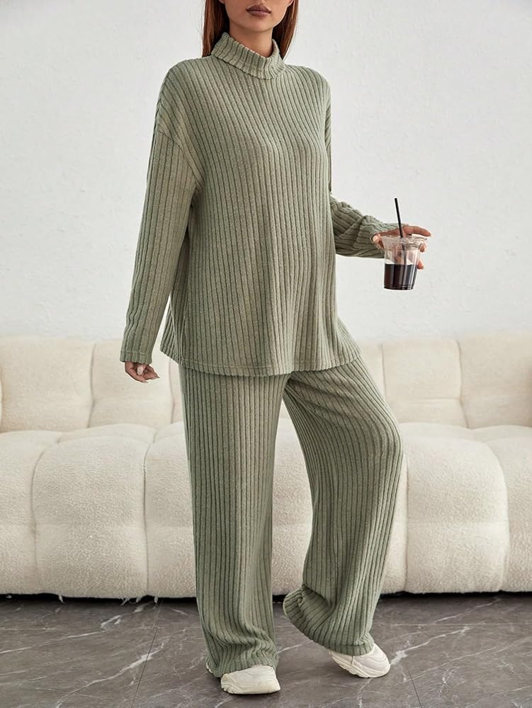 • Feature: Rib knit, long sleeve, turtleneck, drop shoulder, tee shirt, pants set, pregnancy 2 piece outfit