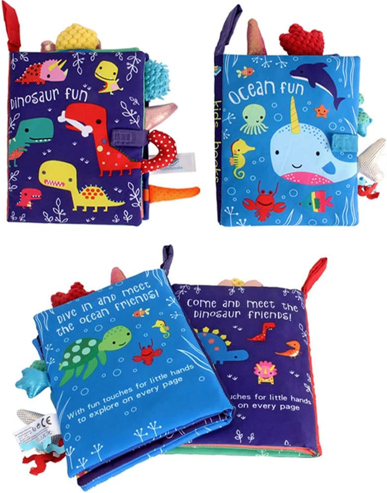 لعبة التعليم المبكر للأطفال على شكل ديناصور وذيل المحيط من ORAPOH، كتاب قماش مجعد للأنشطة للأطفال الصغار والرضع والأطفال مثالي لاستحمام الطفل (عبوتان)