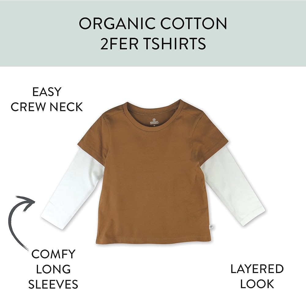 HonestBaby unisex-baby Multipack Long Sleeve T-shirts Tee 100% Organic Cotton Infant Baby, Toddler, Little Kids Boys, Girls, Unisex