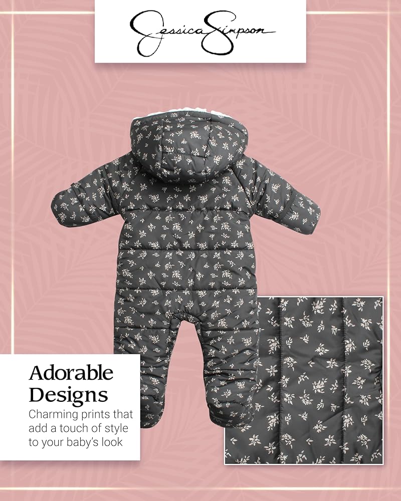 OFFICIALLY LICENSED JESSICA SIMSPON: Baby Girls' Fleece Lined Winter Pram Snowsuit; Looks to layer from day to night