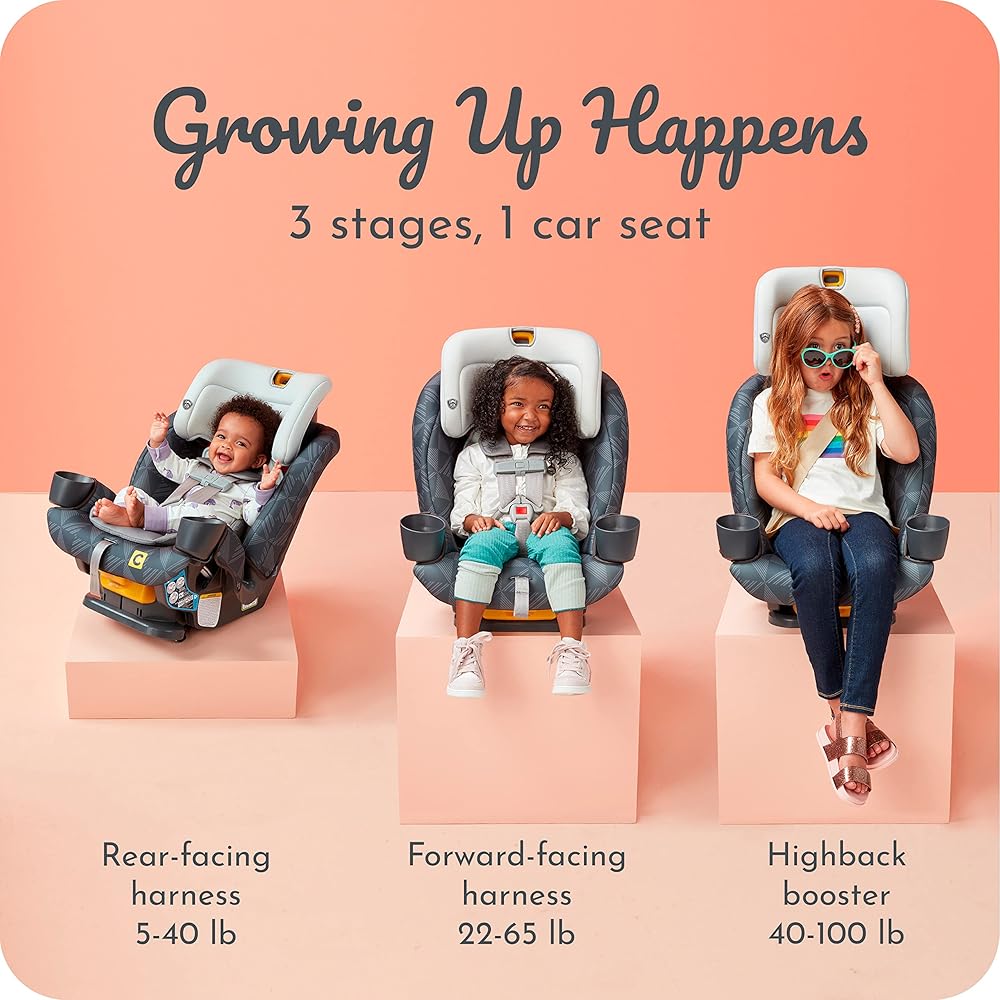 Finally, something your kiddo won't outgrow so fast—we're looking at you, newborn onesies. Listen, growing up happens, and your little needs to be safe and secure every step of the way. Enter the Century® Drive On™ 3-in-1 Car Seat, nicknamed ""The Fantastic Fit"" for its clever, streamlined design. Part of our Happy Planet Collection, this car seat is made with fabrics made from recycled materials. That's part of our Do More™ promise to Recycle, Reimagine, and Give Back. With 3 modes of use for kids 5-100 lb, it grows as your mini does. Also awesome: Its slim design saves precious back seat space, so there's plenty of room for everyone else. And how about this? A no-rethread harness system means no strap struggle when it's time to adjust. The one-hand adjustment leaves one hand to pull snug and one hand for baby—makes sense, right? Century® KeepSafe™ means this seat is designed and tested to help provide safe and secure protection so you can focus on the road ahead.