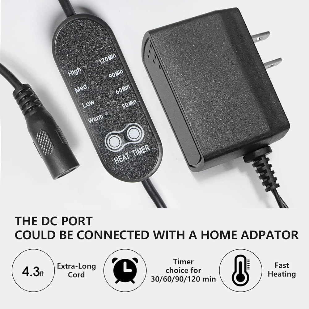 منفذ DC مريح 12 فولت: يمكن توصيل منفذ DC لوحدة التحكم هذه بمحول منزلي للاستخدام الداخلي. وهذا يسمح باستخدام غطاء المقعد المُدفأ في المكتب والمنزل.