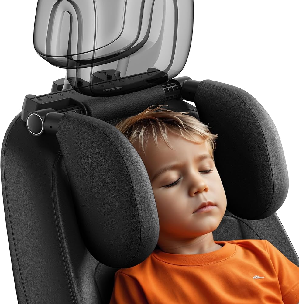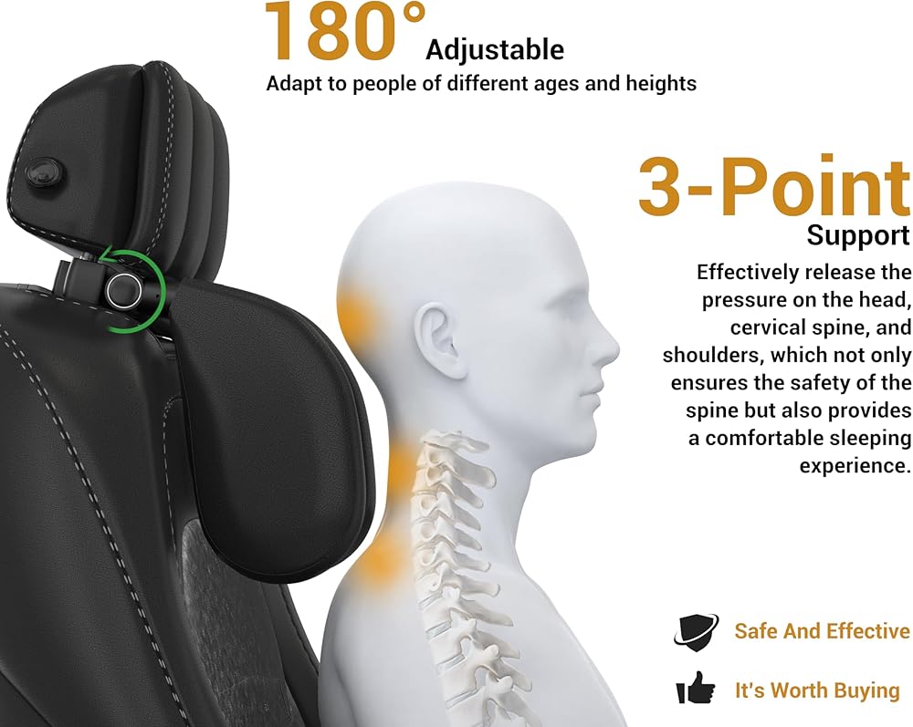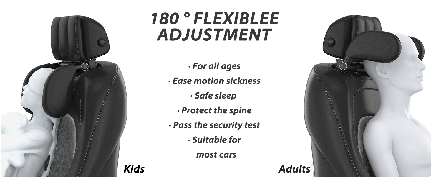 وسادة مسند رأس السيارة WAPEXNOS، مسند رأس سميك من إسفنج الذاكرة، وسادة دعم الرقبة، قابلة للتعديل 180 درجة، نوم السيارة أثناء السفر، تمنع العمود الفقري التواء عنق الرحم، مناسبة للأطفال والكبار (أسود)