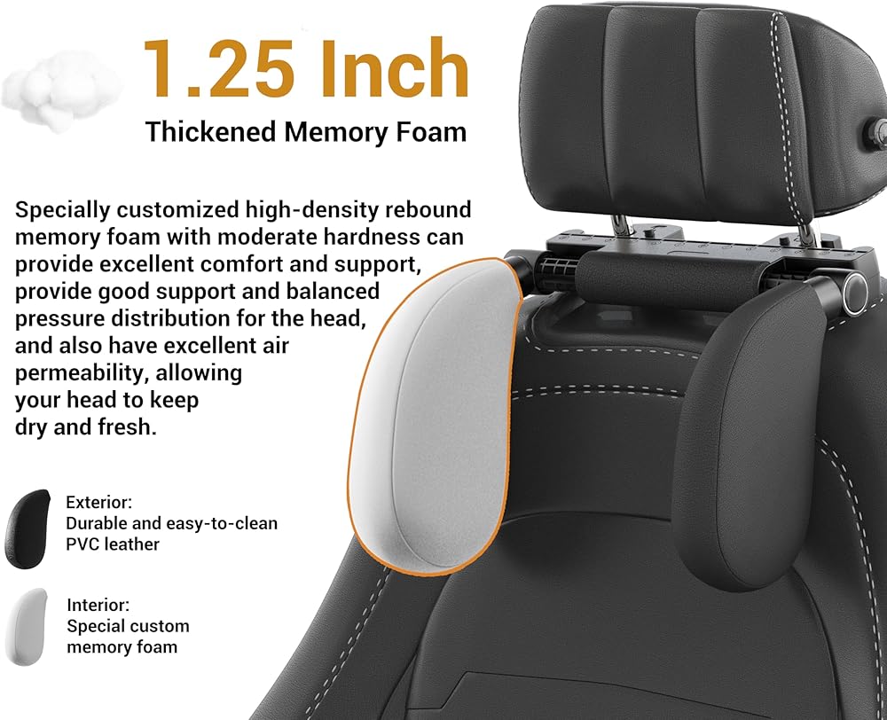 دعم وراحة معززة: مسند رأس السيارة الخاص بنا مصنوع من الجلد الفاخر وإسفنج الذاكرة السميك، مما يوفر دعمًا فعالاً للرقبة لمنع الالتواءات ويوفر تجربة راحة مريحة أثناء قيلولة السيارة. يبدو الأمر وكأنك تتكئ على أكتاف أحبائك - أقاربك أو أصدقائك أو حتى الأشخاص المهمين الآخرين - لرحلة ممتعة.