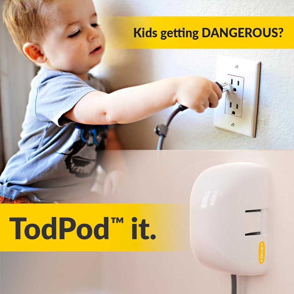 DESIGNED BY A LOVING DAD who tries to solve his own problem. I'm a designer and worked from home when Covid hit, in the meantime I had my second son. It was a blessing, but it's also a bit crazy with two kids and two adults stuck home almost 24/7. Inevitably they crash into my “home office” and wreak havoc. I have multiple PCs and displays that need to be plugged in all the time so I wish there was something that's EASY TO USE and BIG ENOUGH to COVER ALL THE PLUGGED-IN CABLES. So I started designing. The end result is what you see here, the TodPod. It PROTECTS MY WORK, and more importantly, PROTECTS MY KIDS. I designed the SLIDE-TO-LOCK mechanism that's EASY FOR ADULT, yet DIFFICULT FOR A TODDLER to use. As soon as the first round of prototypes was done, I started using them beyond my “home office” – IN KITCHEN, LIVING ROOM, PLAYROOM, BEDROOM/NURSERY… So much stuff needs to stay plugged in - coffee machine, InstaPot, fans, lights, humidifier, area heaters, night lights, baby-soothing gears… and, all kinds of chargers! So I designed it with MORE ROOM INSIDE. If it fits on the plate and clears the two slots, it most likely will fit. As a designer of course I want it to LOOK GOOD. I picked a cream white out of 30+ whites that is warm and bright, but not pale, so it will FIT MOST DECORS. My kids run and crawl around like crazy and I don't want them to bump into something and get hurt. So I designed the TodPod to be SAFE, ROUND, NO SHARP EDGE, but more importantly, BUBBLY AND HAPPY. Cables and chargers can move around. When they are gone, I don't wanna leave half a box, an eye-sore and dangerous object sticking out on the wall. So TodPod is designed WHEN YOU TAKE THE COVER OFF, the WALL PLATE IS FLUSH. All in all, I designed it for my kids, and I use it personally, everywhere in my home. I figure there are tons of parents who might have the same needs, so I present to you my proud little invention, the TodPod. Hope you find it useful. Cheers!
