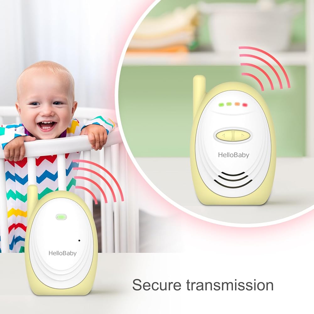 جهاز مراقبة الأطفال الصوتي HelloBaby HB168 مع نطاق يصل إلى 1000 قدم، ومؤشر صوت، ونقل رقمي، وصوت في اتجاه واحد