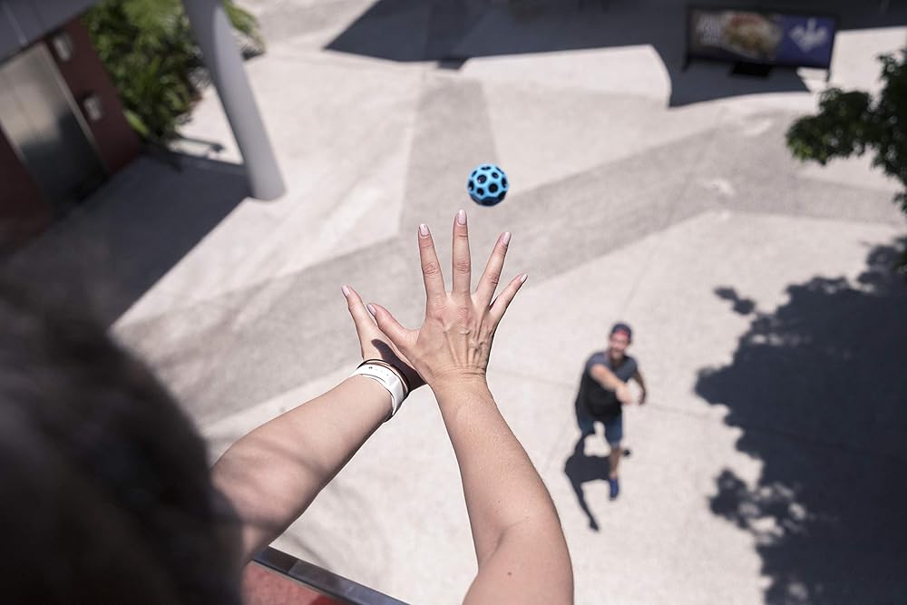 خطوة صغيرة لوابوبا، ارتداد عملاق للبشرية. ارتداد كرة القمر المجنون الذي يتحدى الجاذبية هو خارج هذا العالم. من الممتع للغاية اللعب بها على الرصيف وفي حديقة التزلج وفي النفق وفي صالة الألعاب الرياضية - في كل مكان يوجد سطح صلب.