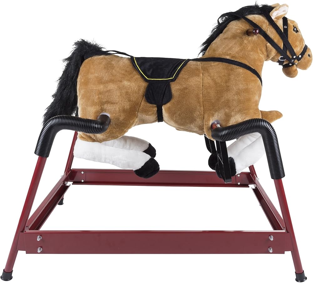 متين وآمن - تم تصميم الحصان الهزاز ذو الزنبرك من معدن عالي الجودة وزنابيع قوية، ومغطى بأنابيب بلاستيكية من أجل السلامة، وكل ذلك يجعل هذه اللعبة قوية وآمنة. مع حشوات قدم معدنية مع مستويات متعددة لوضع القدم، يمكن لطفلك التمرير بسهولة وأمان مع صديقه الجديد.