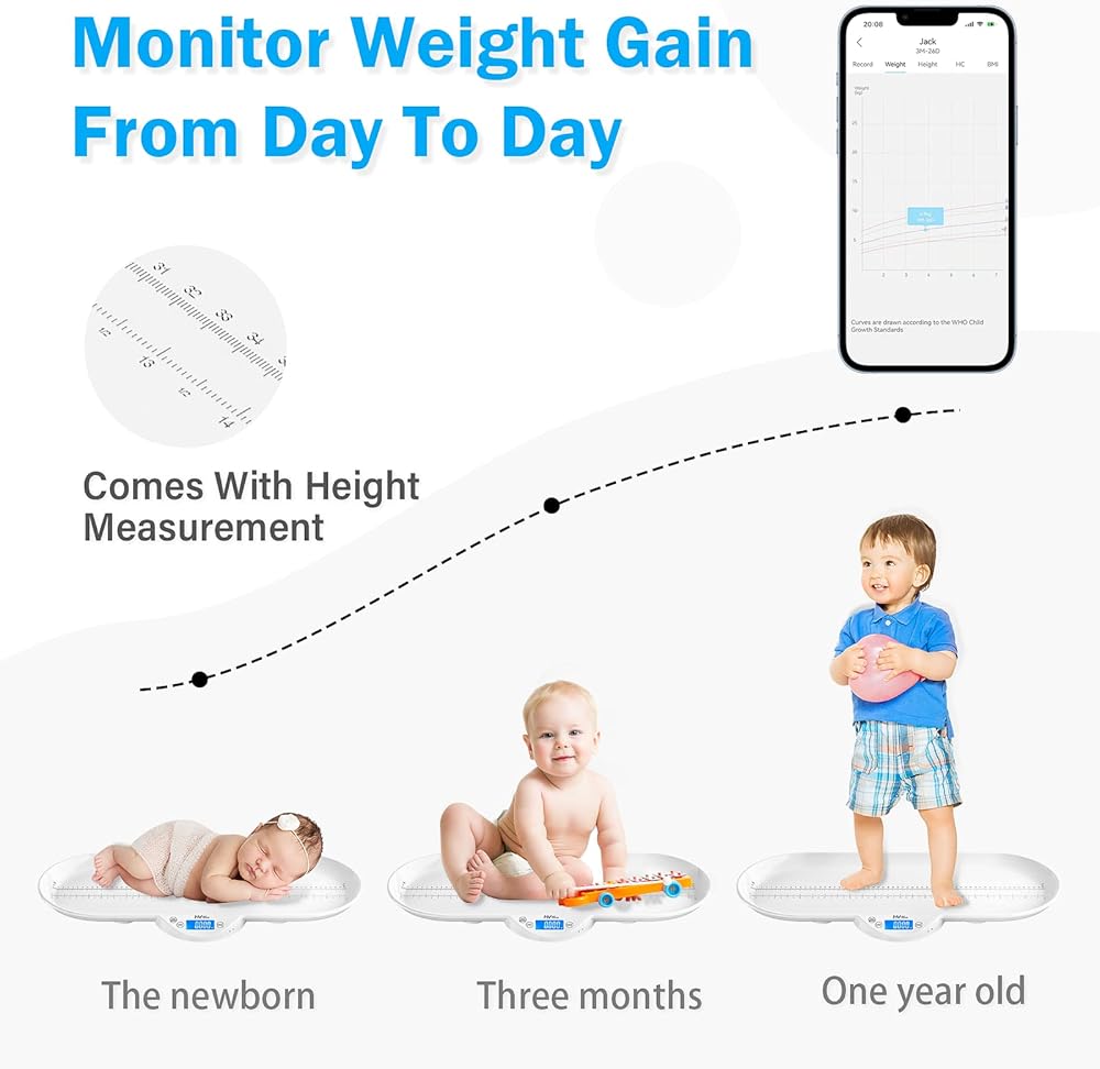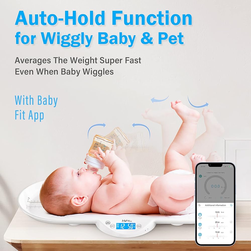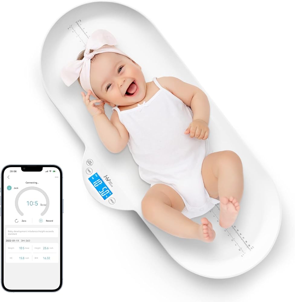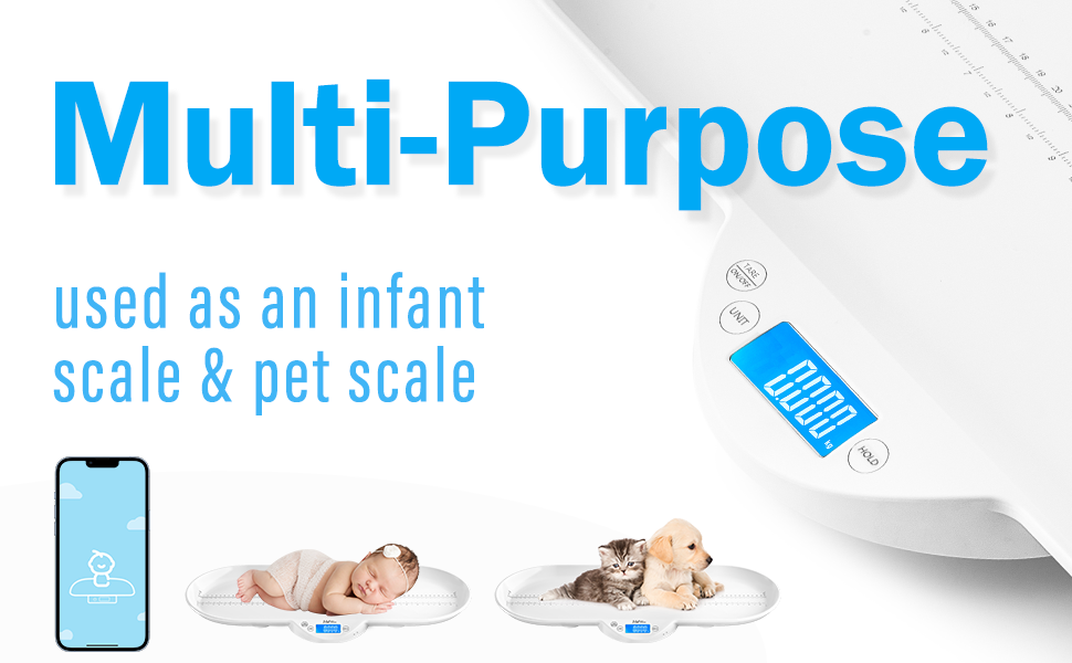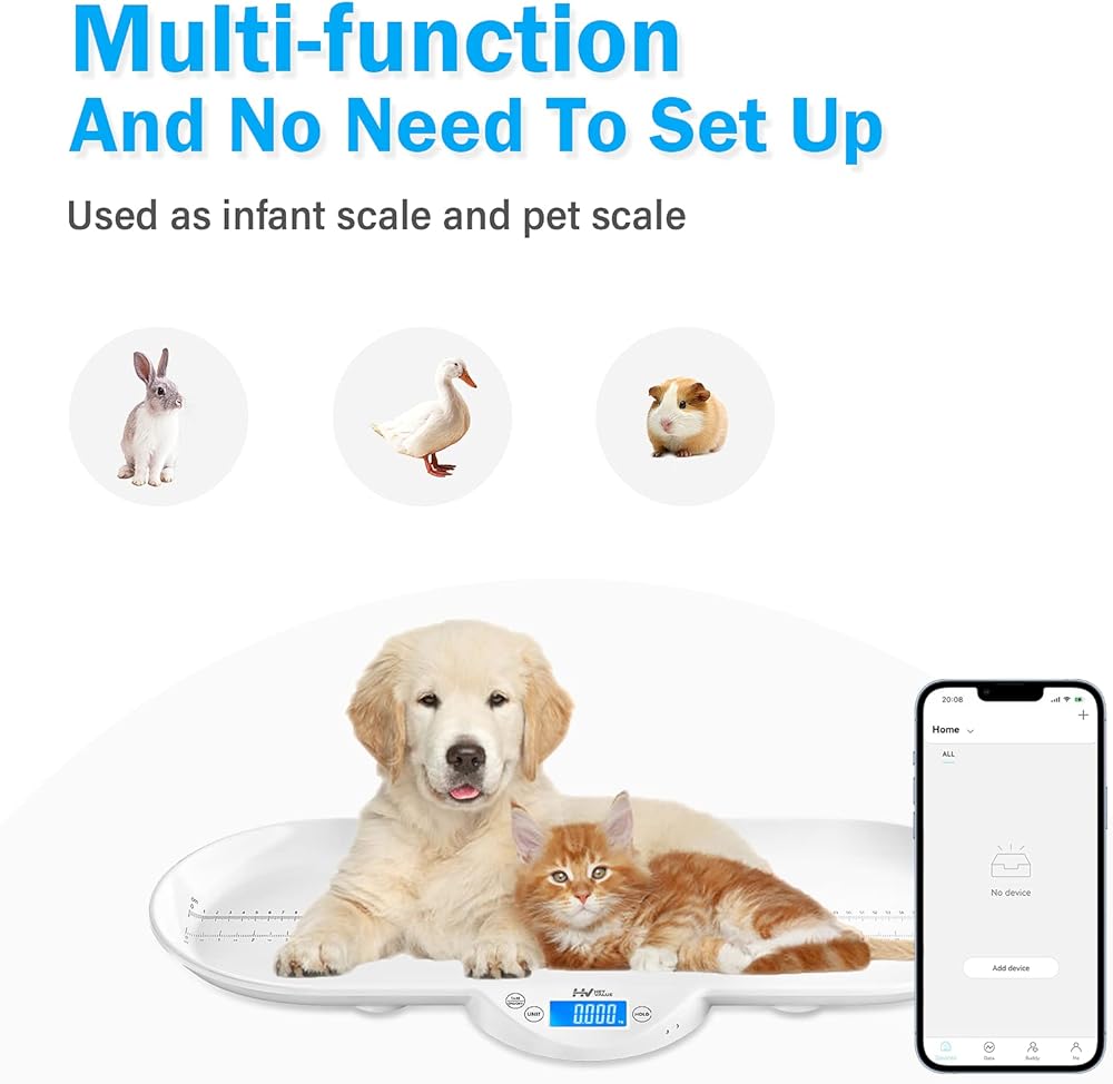 ميزان ذكي للاطفال، ميزان للحيوانات الاليفة، ميزان للاطفال الصغار مع تطبيق، مقياس وزن رقمي لحديثي الولادة والقطط والجراء والحيوانات مع وظيفة التثبيت التلقائي، شاشة LCD، دقة بدقة ± 0.1 اونصة (ذكي)