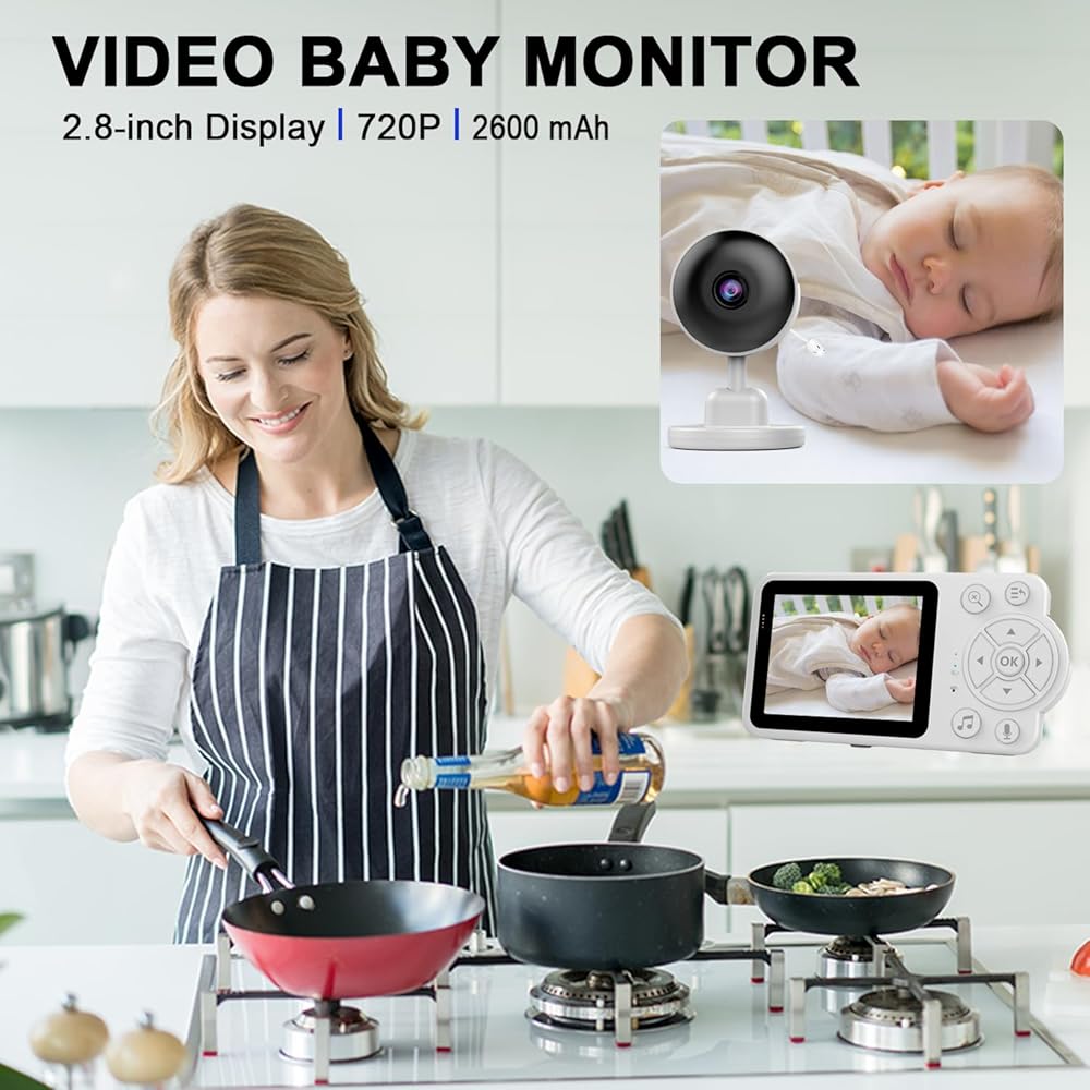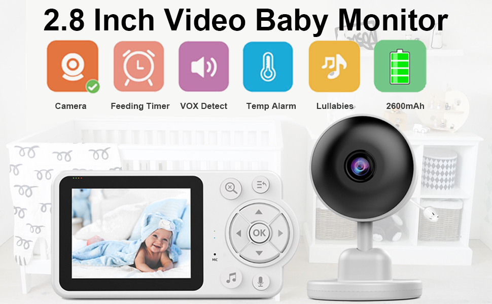 جهاز مراقبة الأطفال فيديو Dosilkc مع الكاميرا والصوت، شاشة كاميرا للأطفال بدون WiFi مع وضع VOX، شاشة 2.8 بوصة، رؤية ليلية بالأشعة تحت الحمراء، صوت ثنائي الاتجاه، مستشعر درجة الحرارة والتهويدات، عمر بطارية 2600 مللي أمبير في الساعة