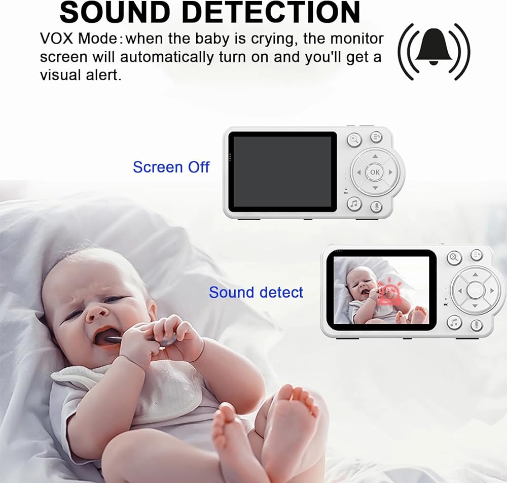 【وضع Vox تلقائيًا واكتشاف البكاء】سيتم إخطار كشف بكاء الطفل على شاشة LCD، أعلى أو أقل من قيمة إعداد الصوت تعرض شاشة LCD VOX وتشغيل نغمة التنبيه وتذكير الشاشة الساطعة.