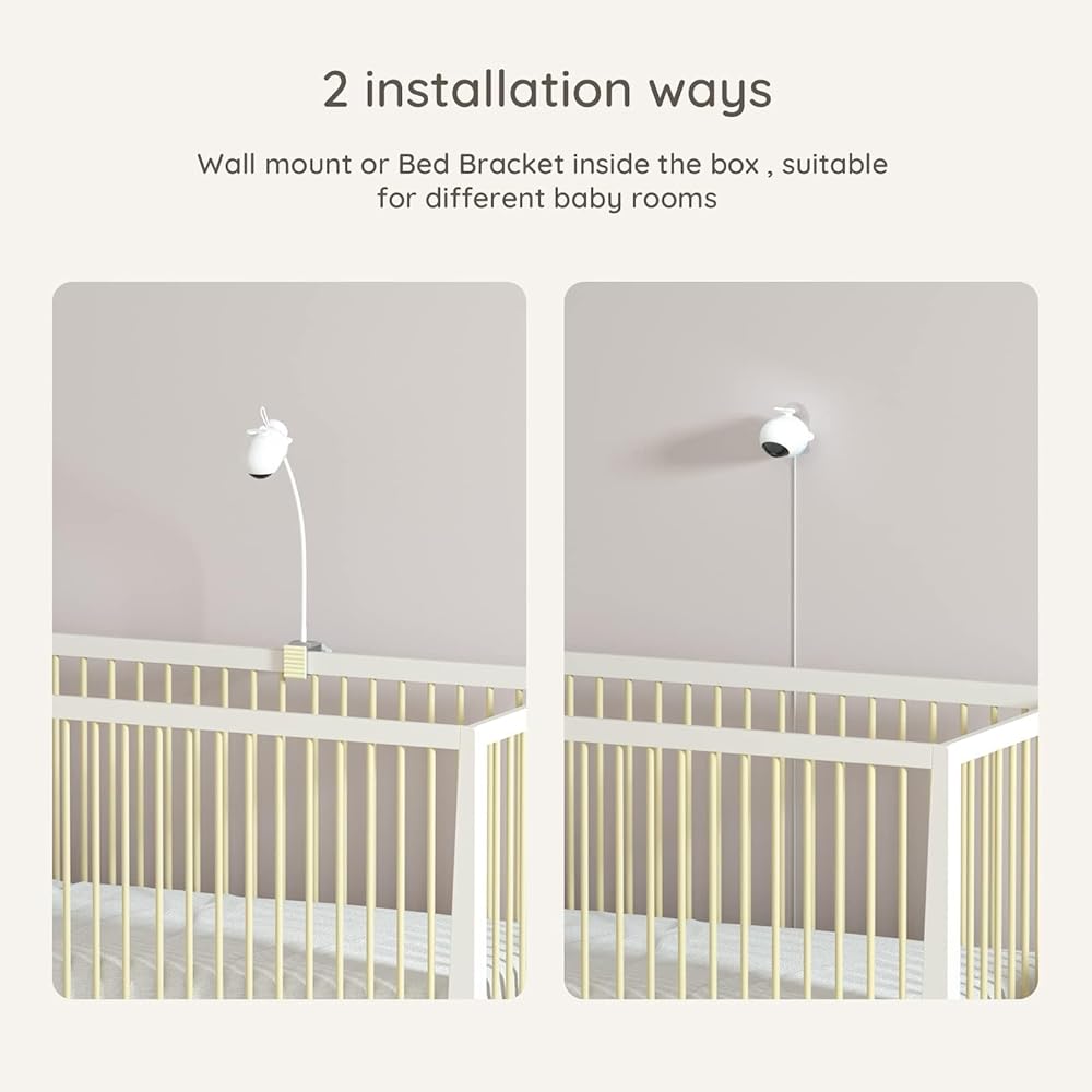 بما في ذلك. يمكن تثبيته على الحائط ومشبك سرير الأطفال، وستحصل على تنبيهات فورية على هاتفك الذكي من خلال ميزة التنبيه المغطى بالوجه، مما يضمن سلامة طفلك أثناء نومه.