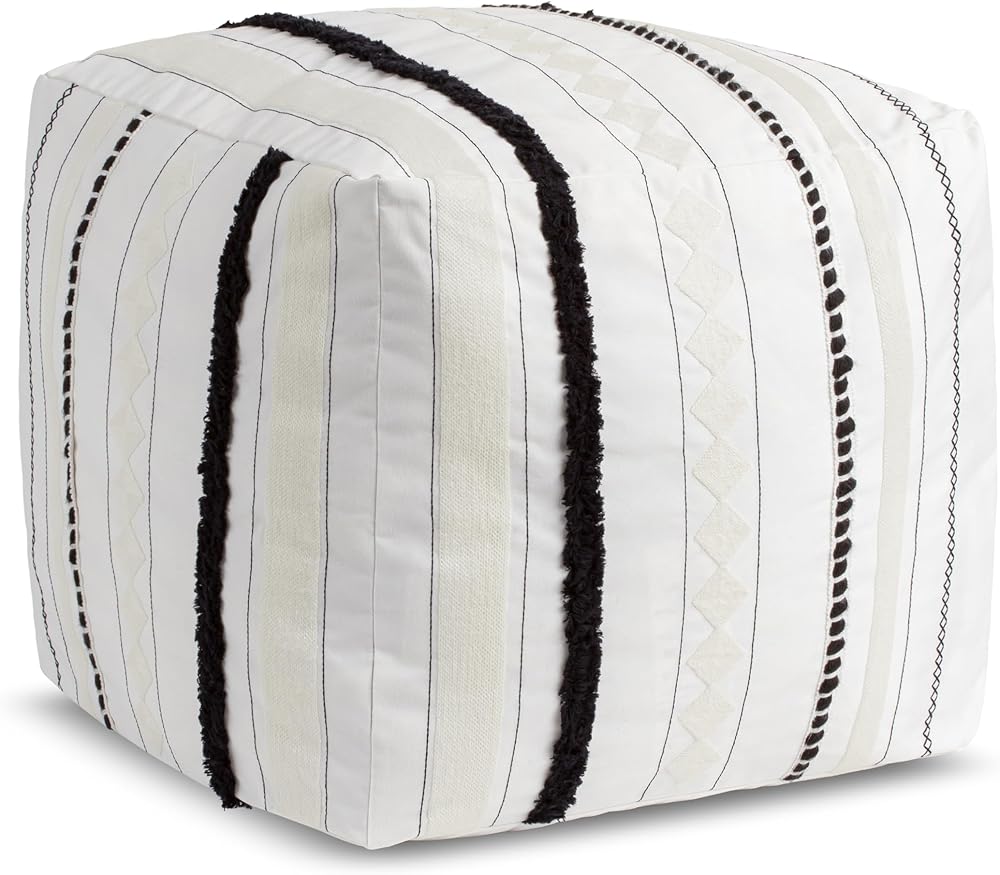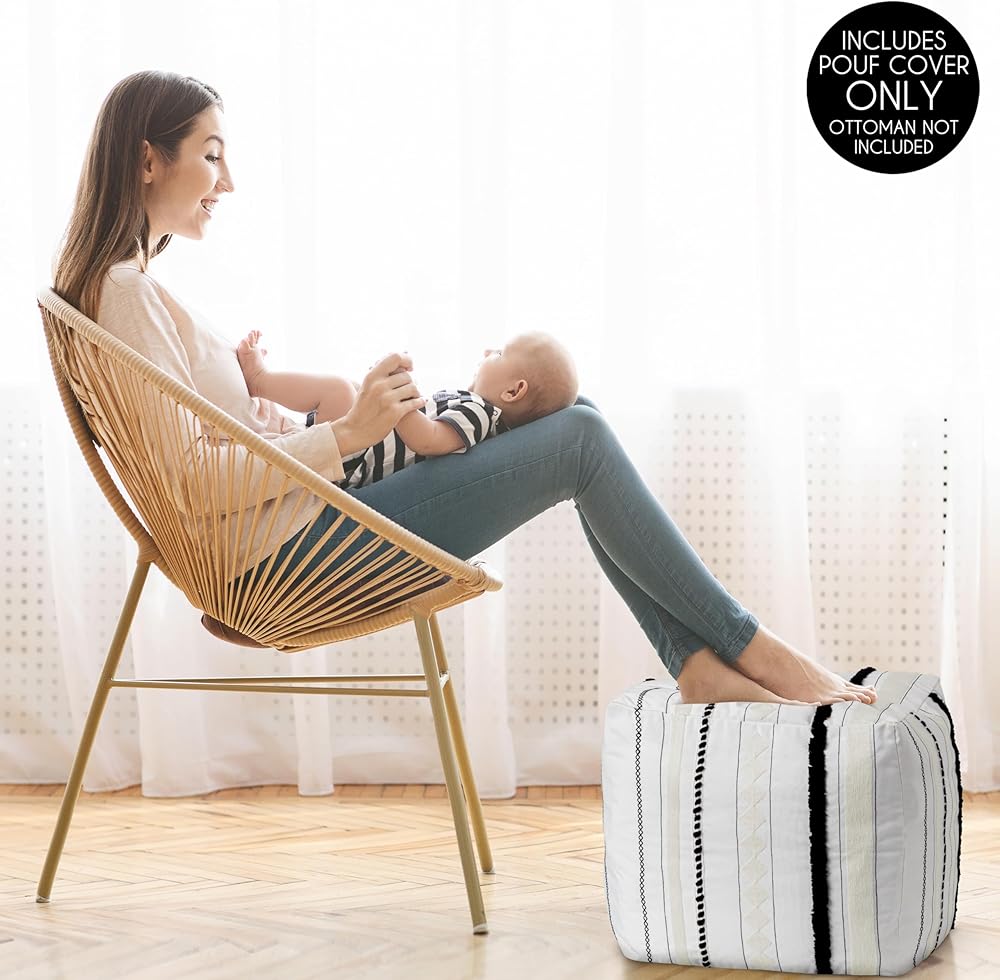 تصميمات Sweet Jojo أسود وأبيض بوهو رث شيك مخطط غطاء وسادة عثمانية محايد غير محشو أرضية مسند للقدمين مربع مكعب تخزين غرفة حضانة الطفل خطوط المزرعة البوهيمية الجنوبية الغربية