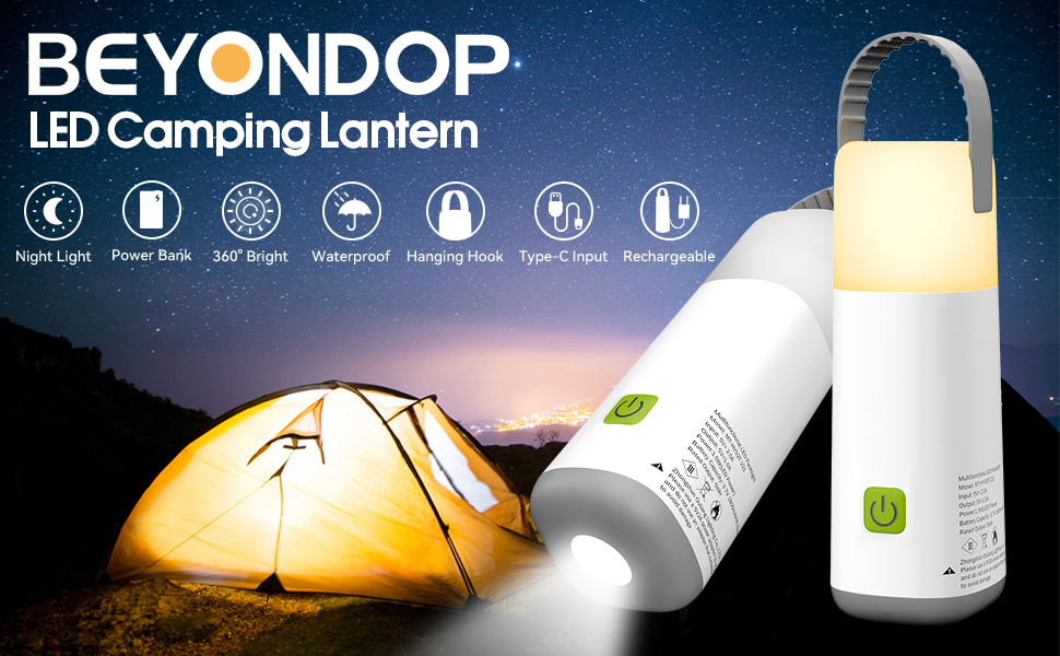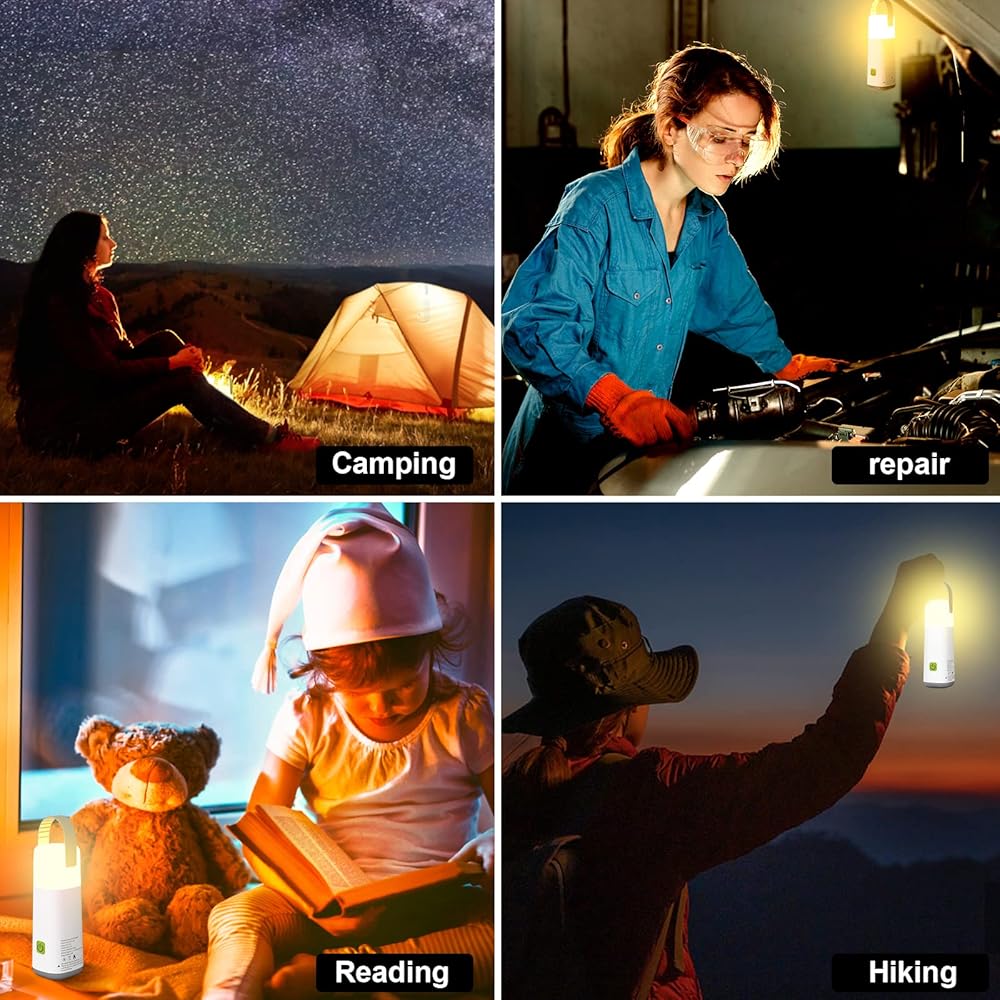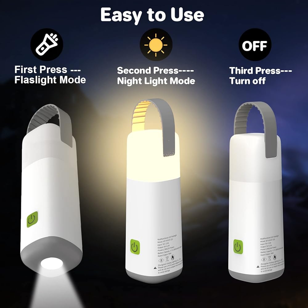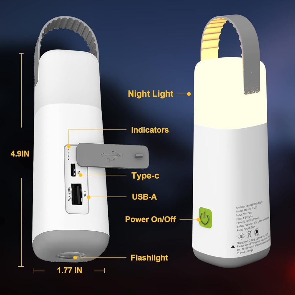 🎁【مصباح تخييم بنك الطاقة】يمكن استخدام مصباح الليل المدمج ببطارية ليثيوم قابلة لإعادة الشحن بقدرة 1800 مللي أمبير في الساعة، كبنك طاقة صغير في حالة الطوارئ أو انقطاع التيار الكهربائي. يمكن استخدامه أيضًا كبنك طاقة لشحن أجهزتك الإلكترونية (1800 مللي أمبير في الساعة)؛ يرجى استخدام محول تيار مستمر 5 فولت/2 أمبير (غير متضمن) لشحن هذا الفانوس.