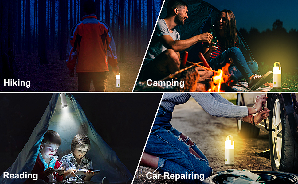 🎁【إضاءة ليلية ومصباح يدوي】يحتوي ضوء الفانوس هذا على وضعين: وضع الضوء الليلي ووضع المصباح اليدوي، ويمكن استخدام معدات التخييم كضوء طوارئ يمكن أن يوفر لك سطوعًا كافيًا للظلام، وانقطاع الطاقة، والإعصار، وقراءة الكتاب، و قريباً.