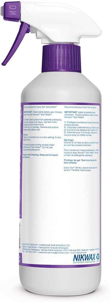 - Recommended for technical clothing, synthetic sleeping bags, rain and ski jackets, GORE-TEX, Patagonia, North face, Columbia, and Arc'teryx