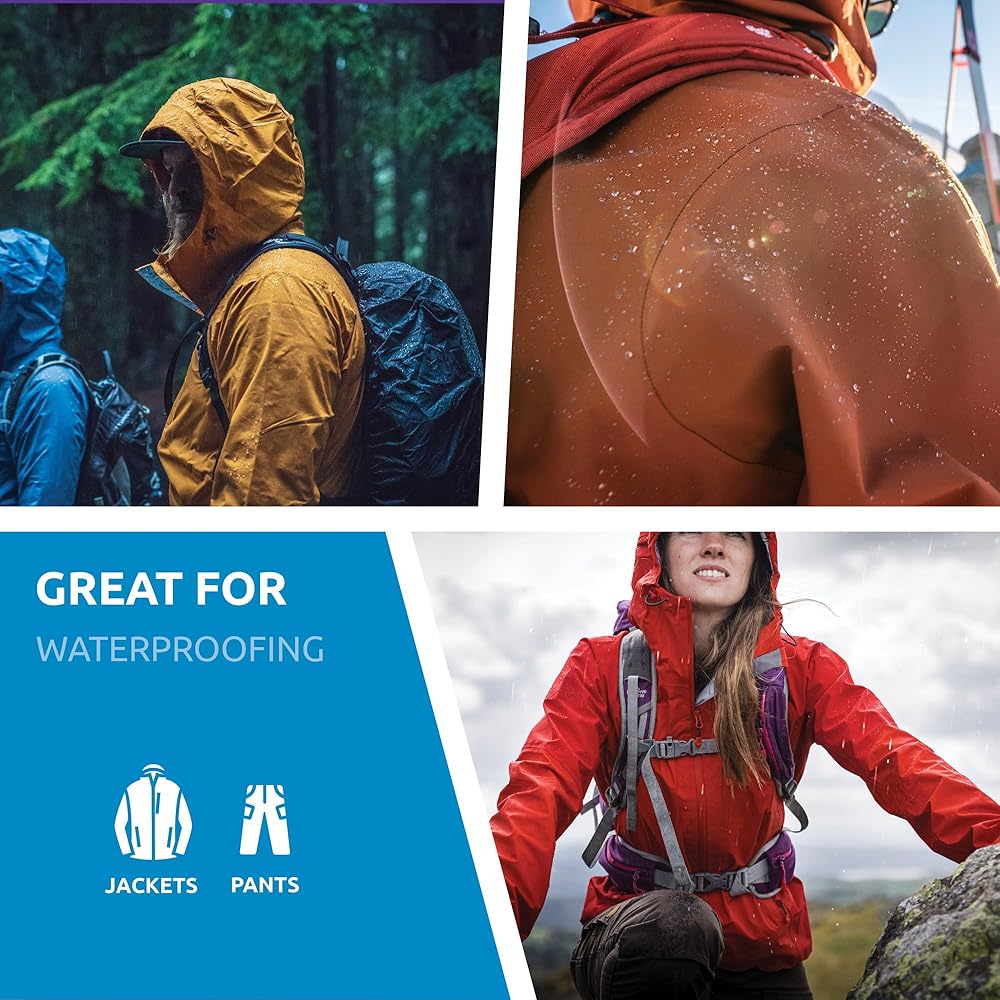 - For use on all waterproof outerwear, such as rain and ski jackets, and synthetic sleeping bags