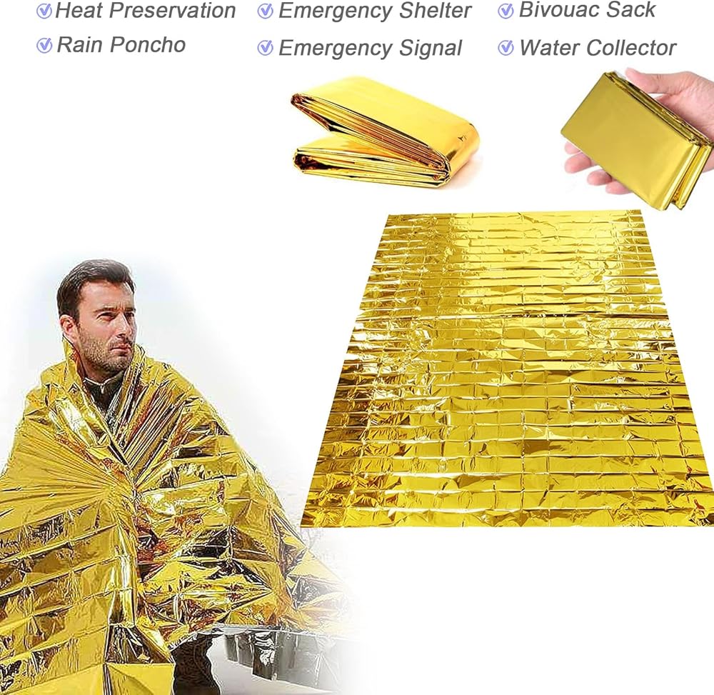 The emergency thermal bag blanket can provide warmth, and protection, and serve as ground cover for picnics or camping, as shade cover on hot days, or even as a dust shield during sandstorms. Their reflective properties make them suitable for signaling in emergencies, ensuring you are visible to rescuers.