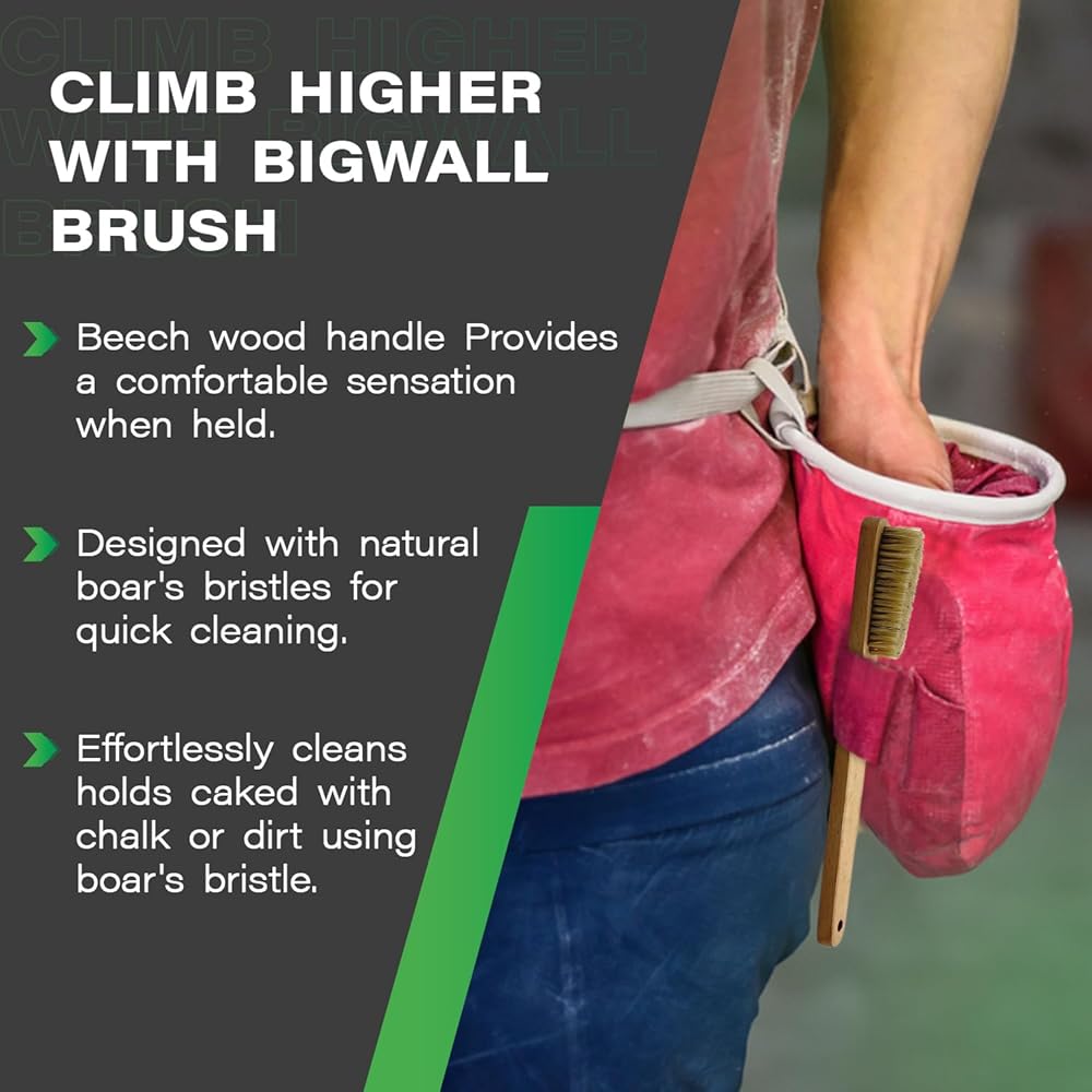 فرشاة تسلق الصخور بمواد عالية الجودة: - تم تصميم فرشاة تسلق الصخور الفاخرة من BigWall مع التركيز القوي على المواد عالية الجودة، مما يجعلها أداة موثوقة ومتينة للمتسلقين. تم تصميم مقبض فرشاة التسلق بدقة من خشب الزان الفاخر، وهو الخشب المعروف بمتانته ومرونته. تضمن فرشاة تنظيف الصخور قدرتها على تحمل قسوة الاستخدام المتكرر على أسطح التسلق المختلفة.