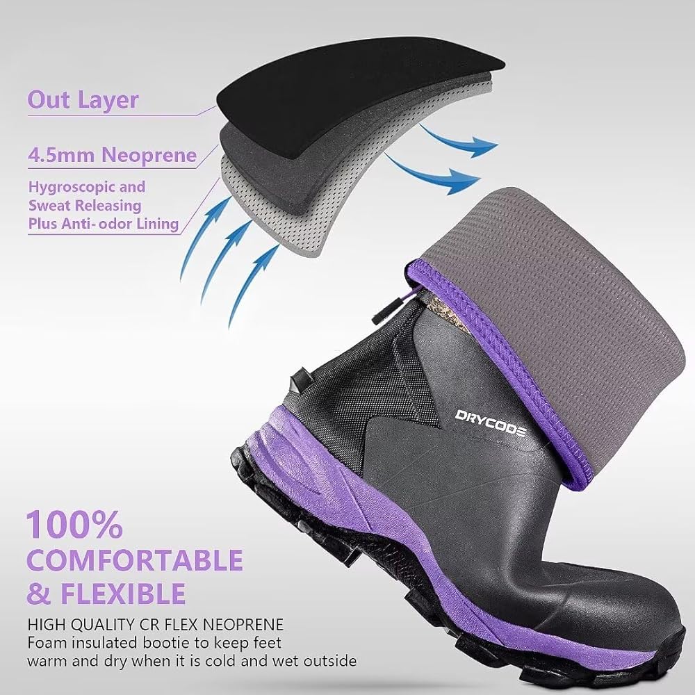 【Superior Fit & Guarantee】Each pair of DRYCODE rubber boots is made strictly according to the US SIZE, please pay attention to the size chart and choose the correct size before purchasing. If you have any questions, please contact us at the first time, we will serve you wholeheartedly and solve your issues.