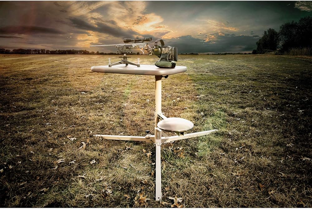 EASE OF USE: Table features a quick-release pin for easy seat height adjustment, an adjustable leg angle for use on uneven terrain and all movements can be locked to ensure a secure shooting bench