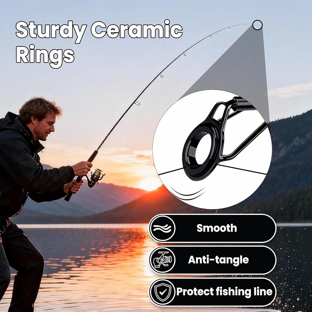 طقم إصلاح طرف قضيب الصيد عالي الجودة: إطار طرف القضيب مصنوع من الفولاذ المقاوم للصدأ من أجل المتانة ومقاومة الصدمات. يمكن للحلقة الخزفية الناعمة أن تمنع خط الصيد الخاص بك من التشابك واللف. طرف القضيب عالي الجودة يقلل من تلف الخط، مما يجعل خط الصيد الخاص بك أقل عرضة للقطع. وبالتالي تقليل خطر هروب الأسماك الكبيرة.