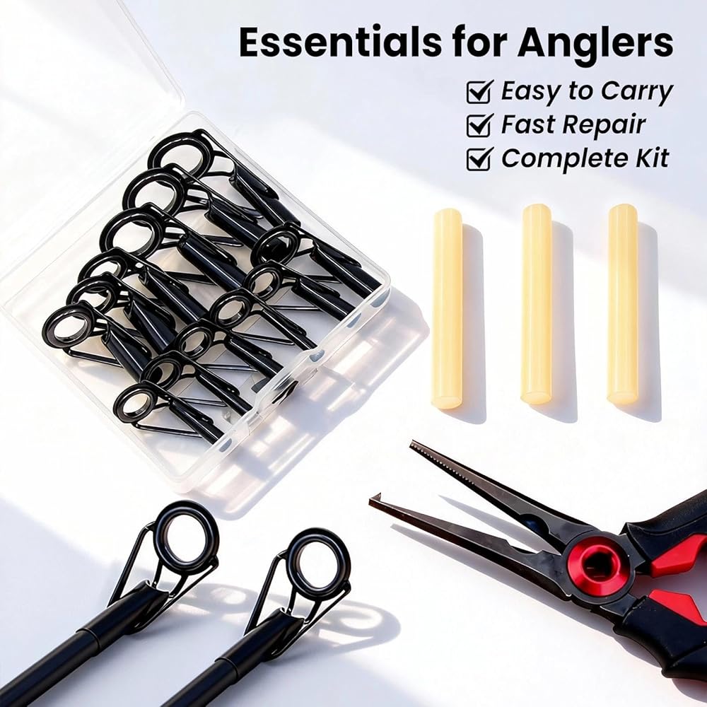 سهولة التركيب والتخزين: تأتي مجموعة إصلاح طرف القضيب بأحجام عديدة وتأتي مع عصا صمغ تذوب الساخنة. بغض النظر عن مكان وجودك، يمكنك إصلاح صنارة الصيد الخاصة بك بسرعة وسهولة باستخدام مجموعة استبدال أطراف القضيب. يأتي مع علبة بلاستيكية لسهولة التخزين والنقل.