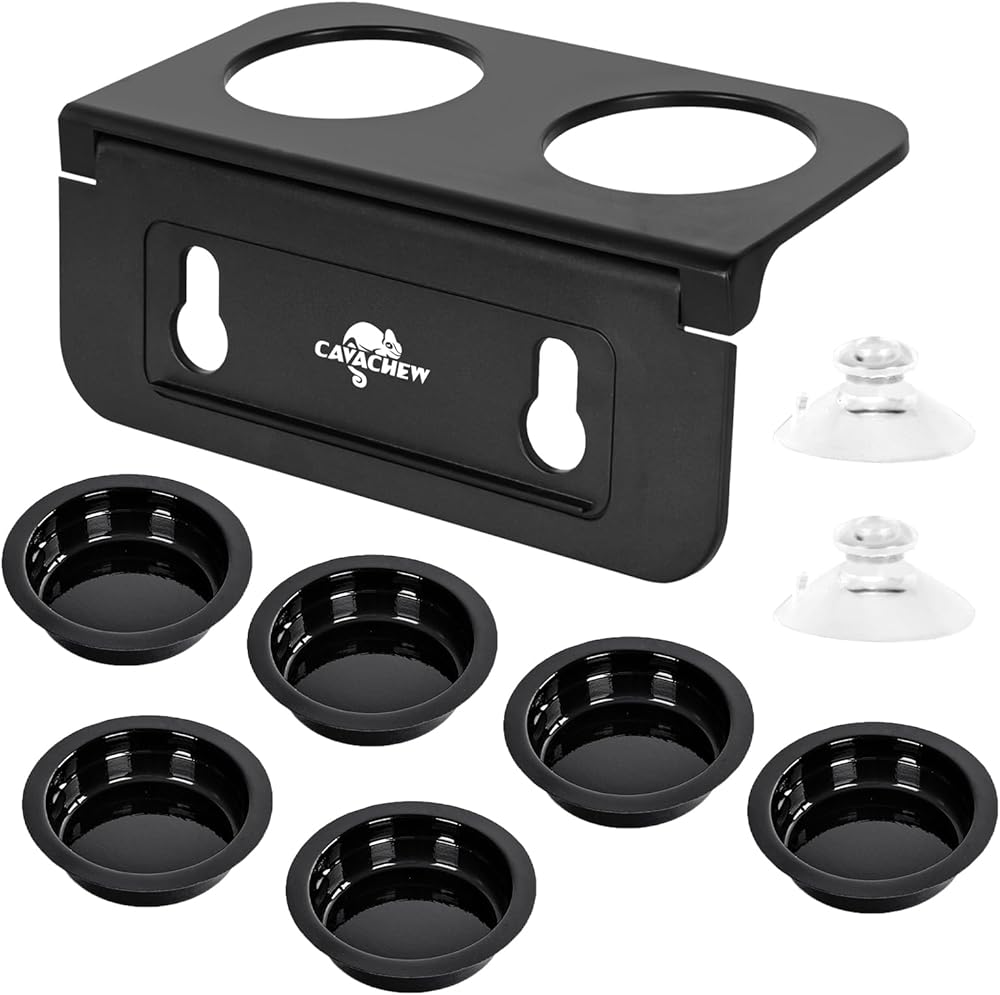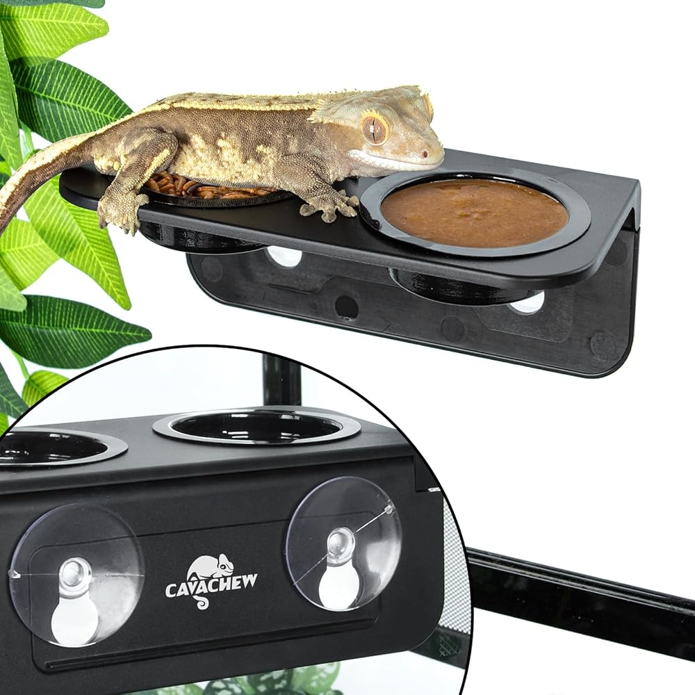 حافة تغذية أبو بريص من كافاشيو، حافة تغذية الزواحف قابلة للطي من أكريلونتريل بوتادين ستايرين مع 6 قطع أكواب بلاستيكية، طبق مياه طعام الزواحف 2 في 1، وعاء تررم لإغوانا الحرباء أبو بريص، شفط قوي، سهل التنظيف