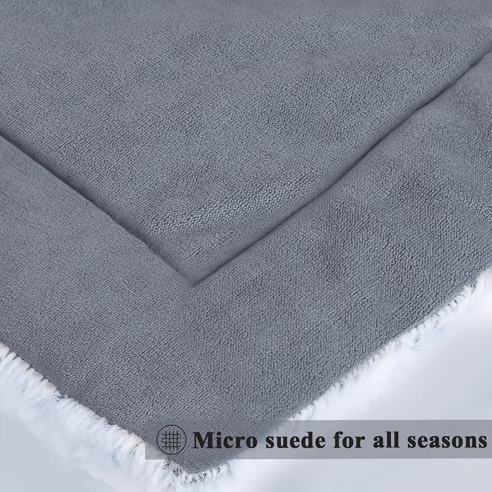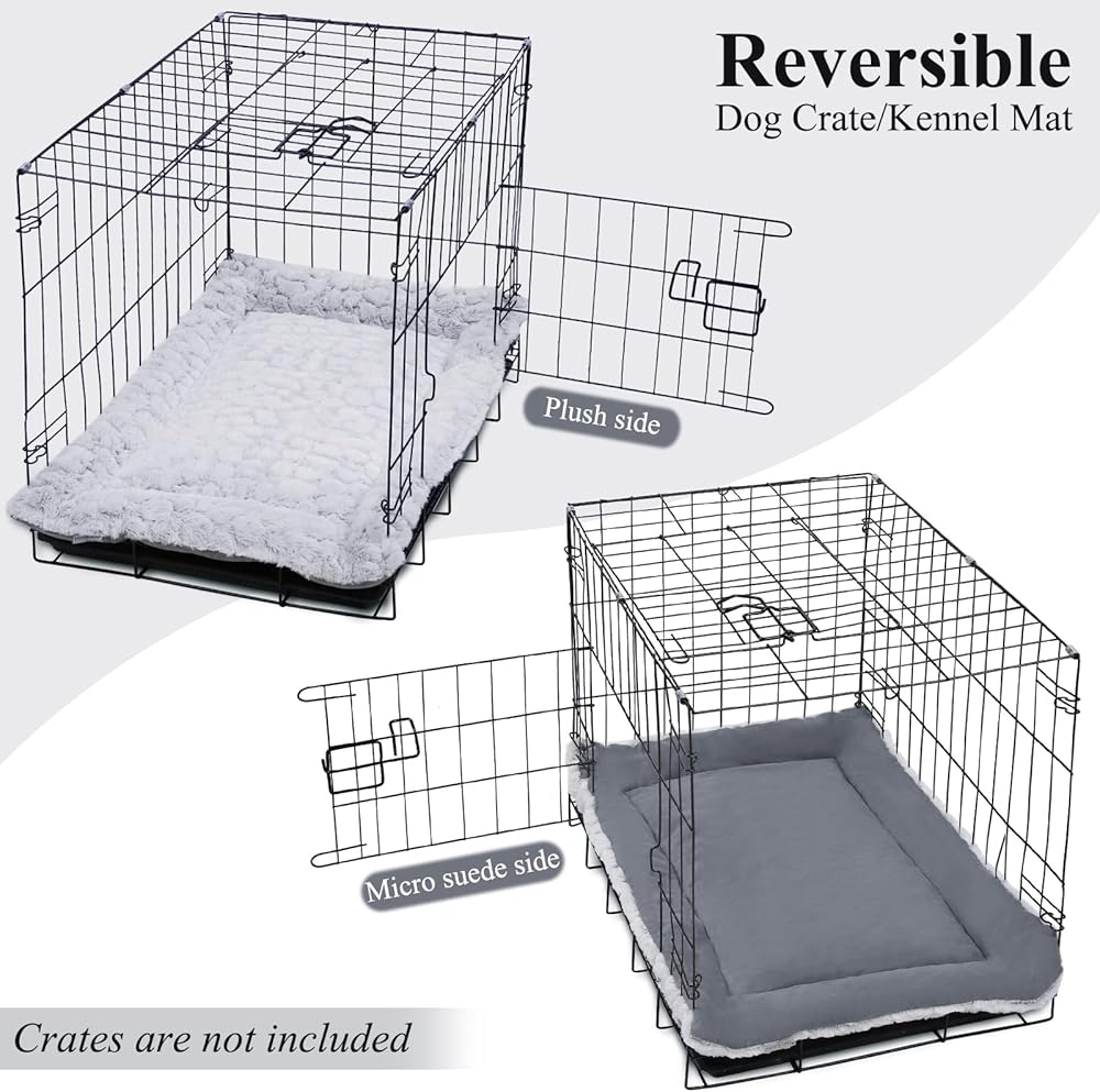 • 【TWO SLEEP SURFACES】VIVAGLORY reversible pet crate bed features a super-soft white plush PV fleece on one side, and micro suede of another color on the reverse side. You could either have the deluxe plush side up or the micro suede. Perfect for ALL SEASONS! Two-tone colors create a fashionable look. Providing your pet with comfort and style. A great addition to your pet crate and home