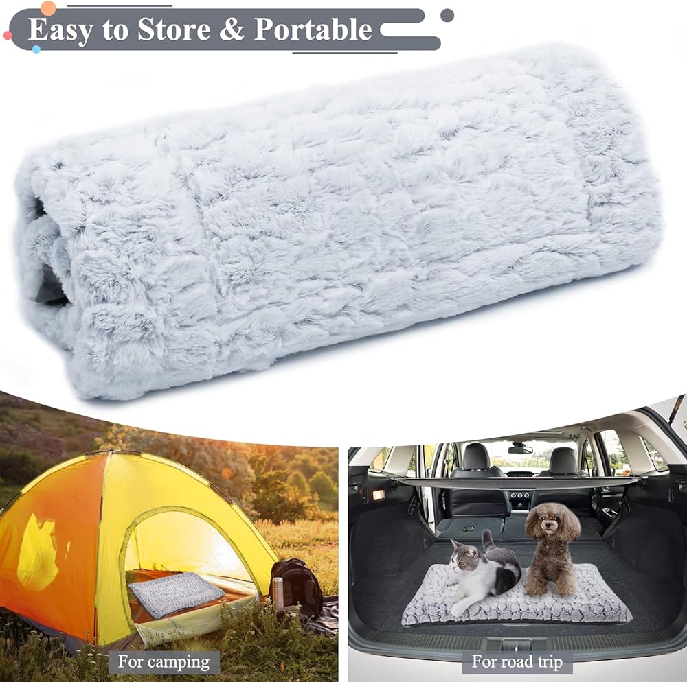 سجادات قفص الكلاب من VIVAGLORY، وسادات بيت الحيوانات الأليفة قابلة للغسل على الوجهين مع قطيفة دافئة مريحة | سرير من جلد الغزال الصغير مناسب لجميع المواسم، سرير نوم محمول للحيوانات الأليفة للتخييم والرحلات البرية