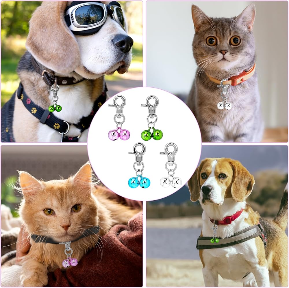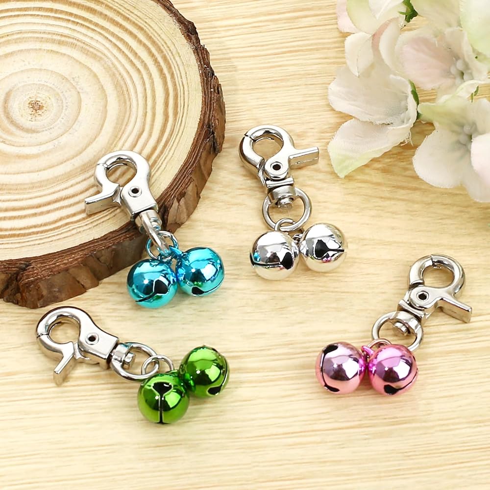 • ما ستحصل عليه: سوف تحصل على ما مجموعه 4 مجموعات من قلادات الجرس، كل مجموعة تحتوي على مشبك إغلاق وجرس، كمية كافية لتلبية احتياجات الاستخدام والاستبدال.