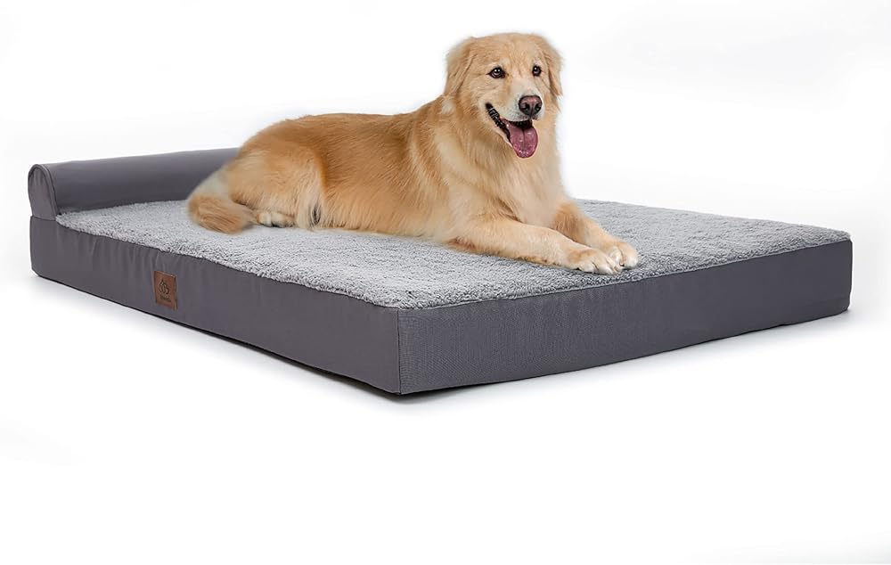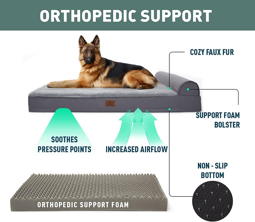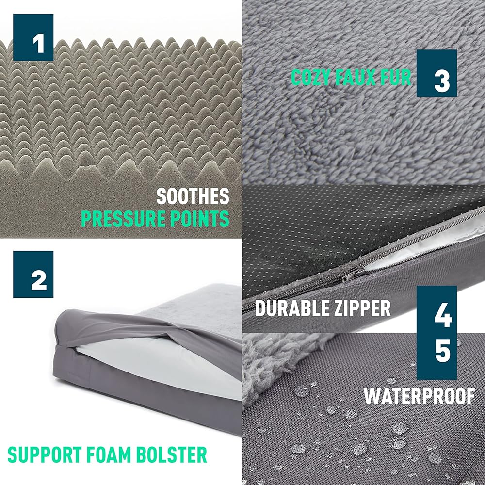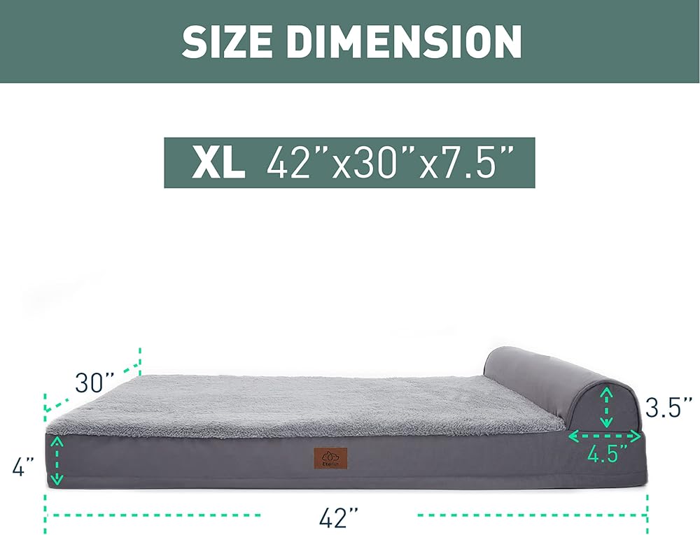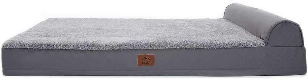 سرير كلب كبير جدًا لتقويم العظام من Eterish للكلاب المتوسطة والكبيرة والكبيرة جدًا التي يصل وزنها إلى 100 رطل، سرير بمسند من الفوم مصنوع من إسفنج قفص البيض بسمك 4 بوصات مع غطاء قابل للإزالة، سرير للحيوانات الأليفة على شكل حرف T قابل للغسل في الغسالة، رماد