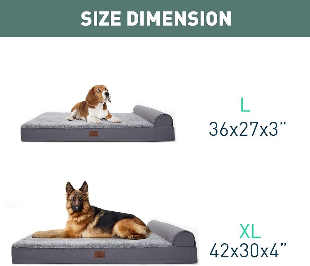 • تفاصيل المنتج - يوصى بمقاس 42 × 30 × 7.5 بوصة (قاعدة 4 بوصة ومسند 3.5 بوصة) للكلاب والحيوانات الأليفة التي يصل وزنها إلى 100 رطل. يرجى ملاحظة أنه نظرًا لحقيقة الضغط، فإننا نقترح عند فتح العبوة وضعها لمدة 48 ساعة حتى تصل إلى أفضل حالة.