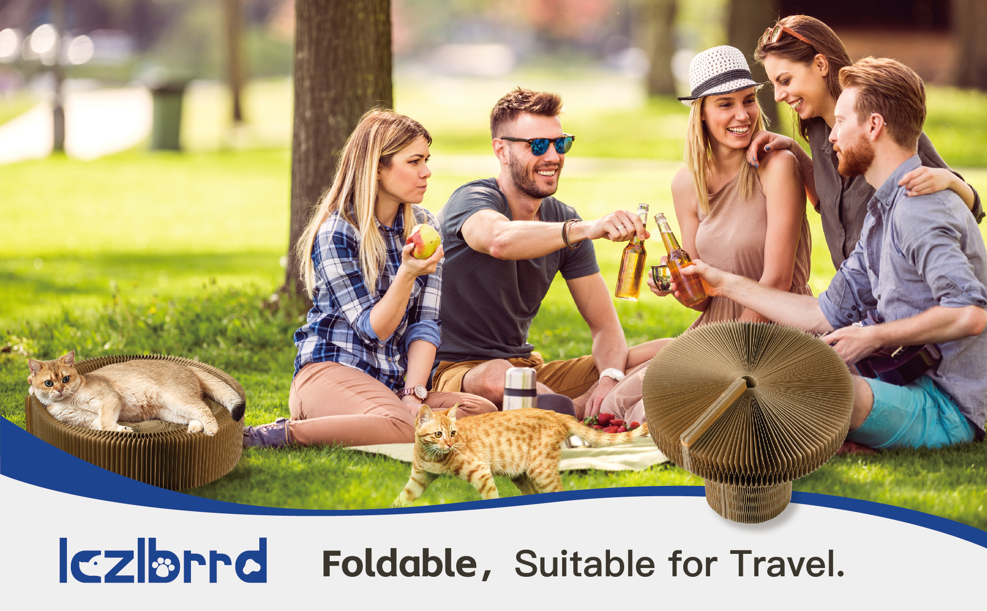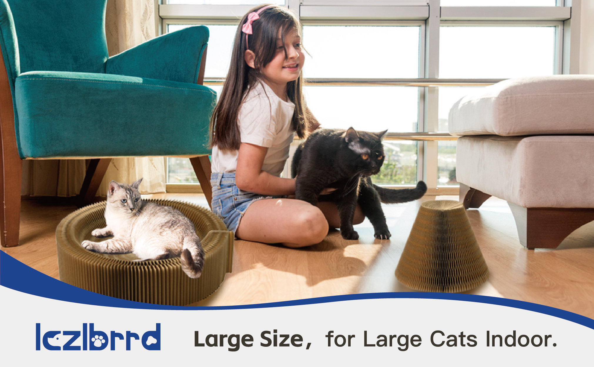 【قابلة للطي وسهلة التجميع】 تحتوي لوحة الخدش على حجم صغير قبل فردها، مما يجعلها مريحة للحمل في الهواء الطلق والسفر كسرير مؤقت للقطط. بعد أن يتم فتح الورق المقوى المخصص لخدش القطط، من السهل ربط الطرفين الأكبر معًا بشريط مطاطي ويمكن استخدامه بشكل جيد جدًا.