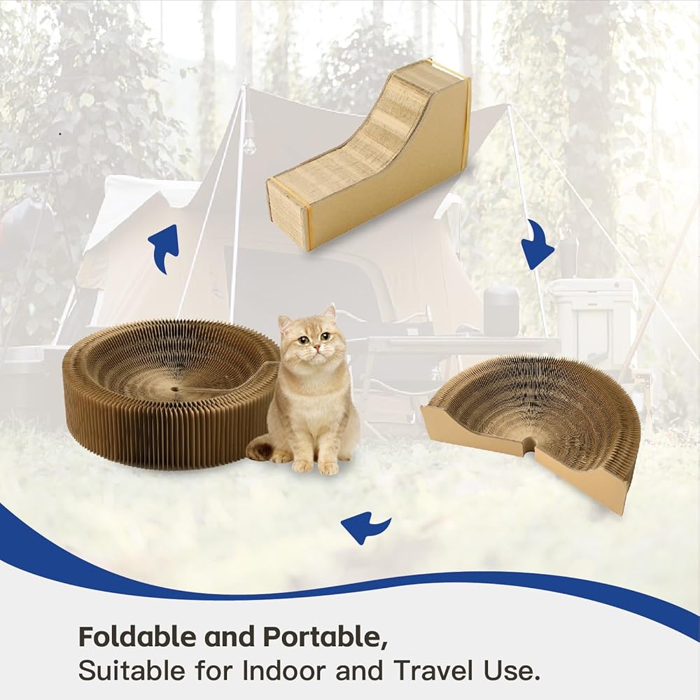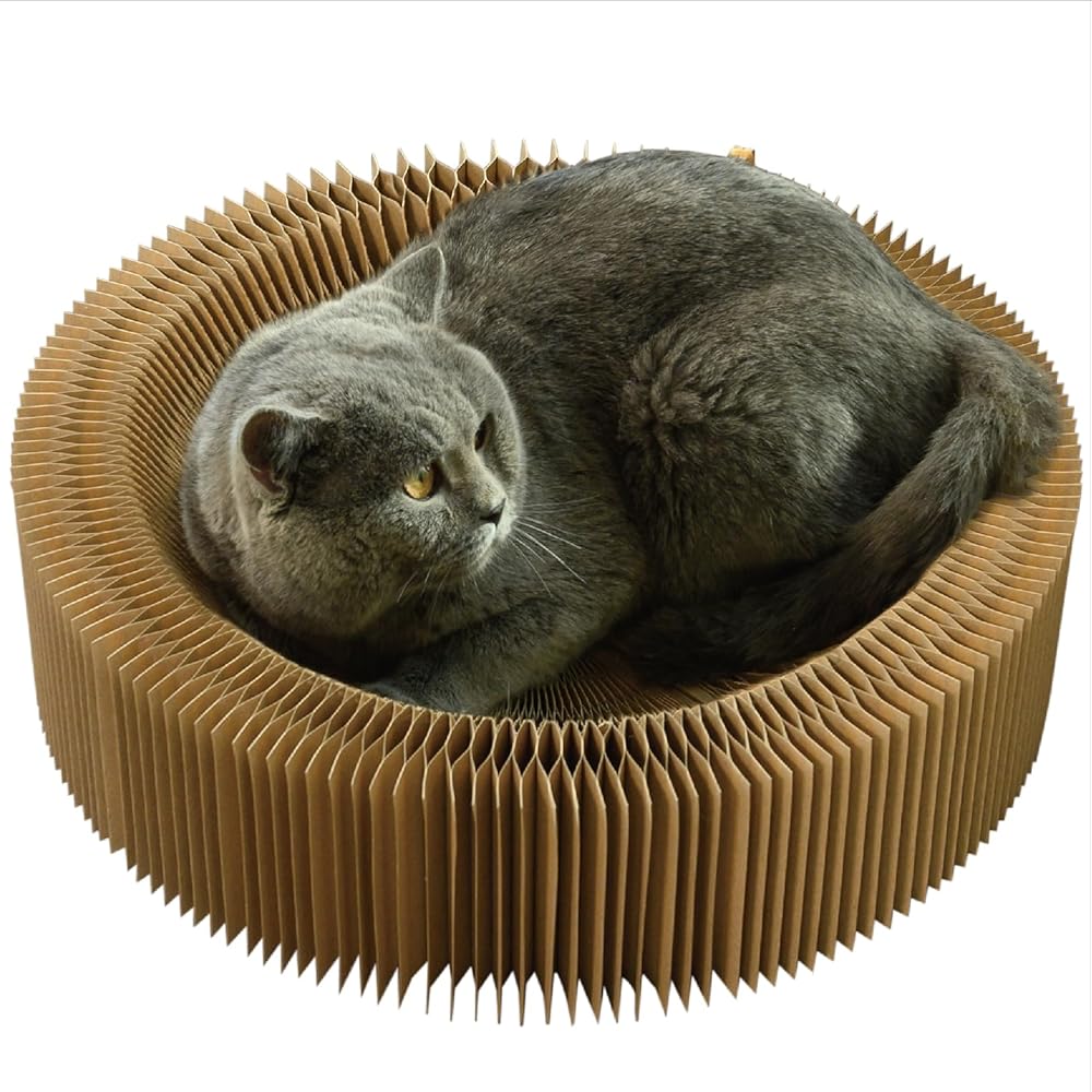 لوح خدش القطط LCZLBRRD، سرير صالة مموج لخدش القطط، قابل للطي والمحمول على شكل دائري، ألعاب وسادة خدش تفاعلية متينة مناسبة للداخل أو السفر - قطر غير مطوي 22 بوصة