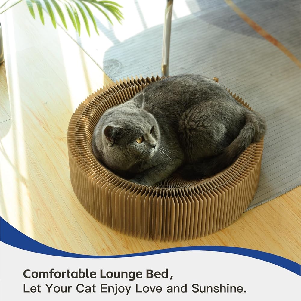【سرير صالة واسع الاستخدام】مصنوع من الورق المقوى المموج القابل لإعادة التدوير البيئي، سرير صالة دائري مريح وجيد التهوية على شكل وعاء لراحة القطط، خاصة عندما يكون ضوء الشمس جيدًا، سوف تستلقي عليه القطط وتنام بشكل سليم.