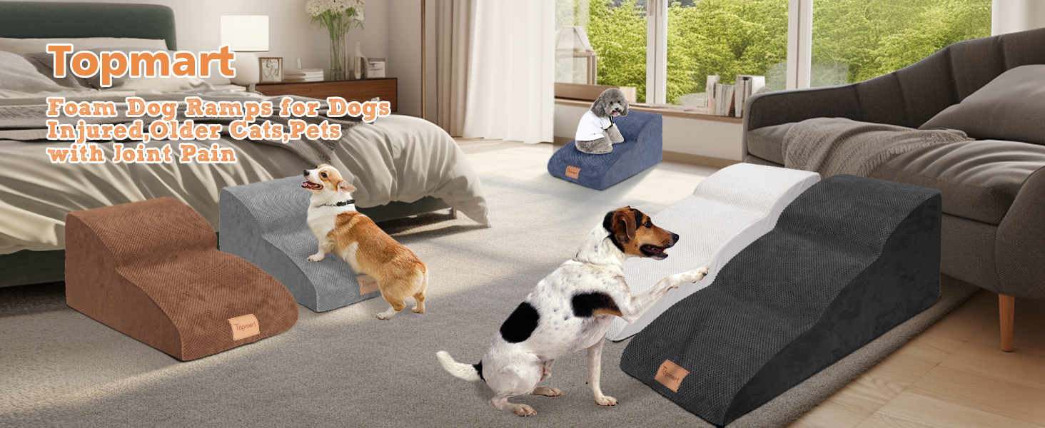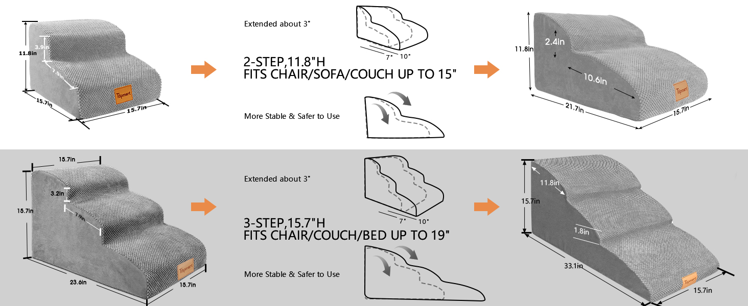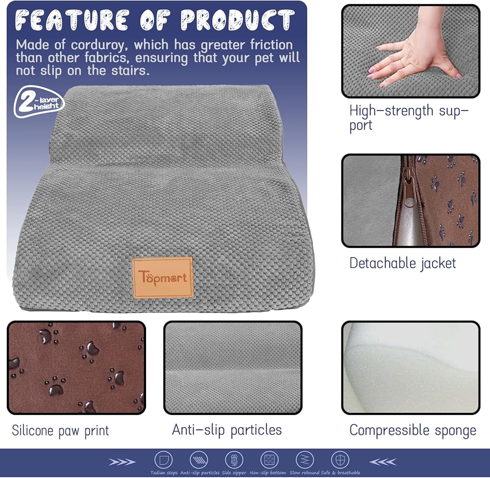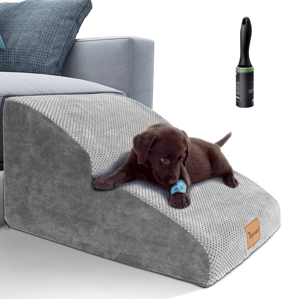 Topmart منحدر وخطوات للكلاب ممتدة عالية الكثافة بطبقتين، ارتفاع 11.8 بوصة، سلالم للكلاب غير قابلة للانزلاق، سلم للكلاب من الرغوة الناعمة مع غطاء مقاوم للماء، أفضل للكلاب المصابة والقطط الأكبر سنًا والحيوانات الأليفة التي تعاني من آلام المفاصل