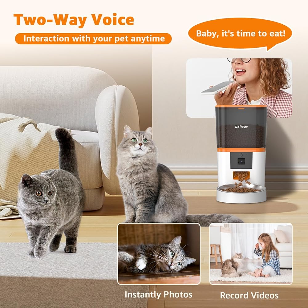 【مكالمات صوتية وشخصية في اتجاهين للوجبات】يتميز جهاز تغذية الحيوانات الأليفة التلقائي هذا بميكروفون ومكبر صوت عالي الجودة للتفاعل في الوقت الفعلي مع حيوانك الأليف من أي مكان والتقاط الصور وتسجيل مقاطع الفيديو. يمكنك تسجيل رسالة صوتية مخصصة مدتها 10 ثوانٍ يتم تشغيلها أثناء أوقات الوجبات لتذكير حيوانك الأليف بتناول الطعام. استمتع براحة الاتصال عن بعد وتأكد من عدم تفويت حيوانك الأليف أي وجبة.