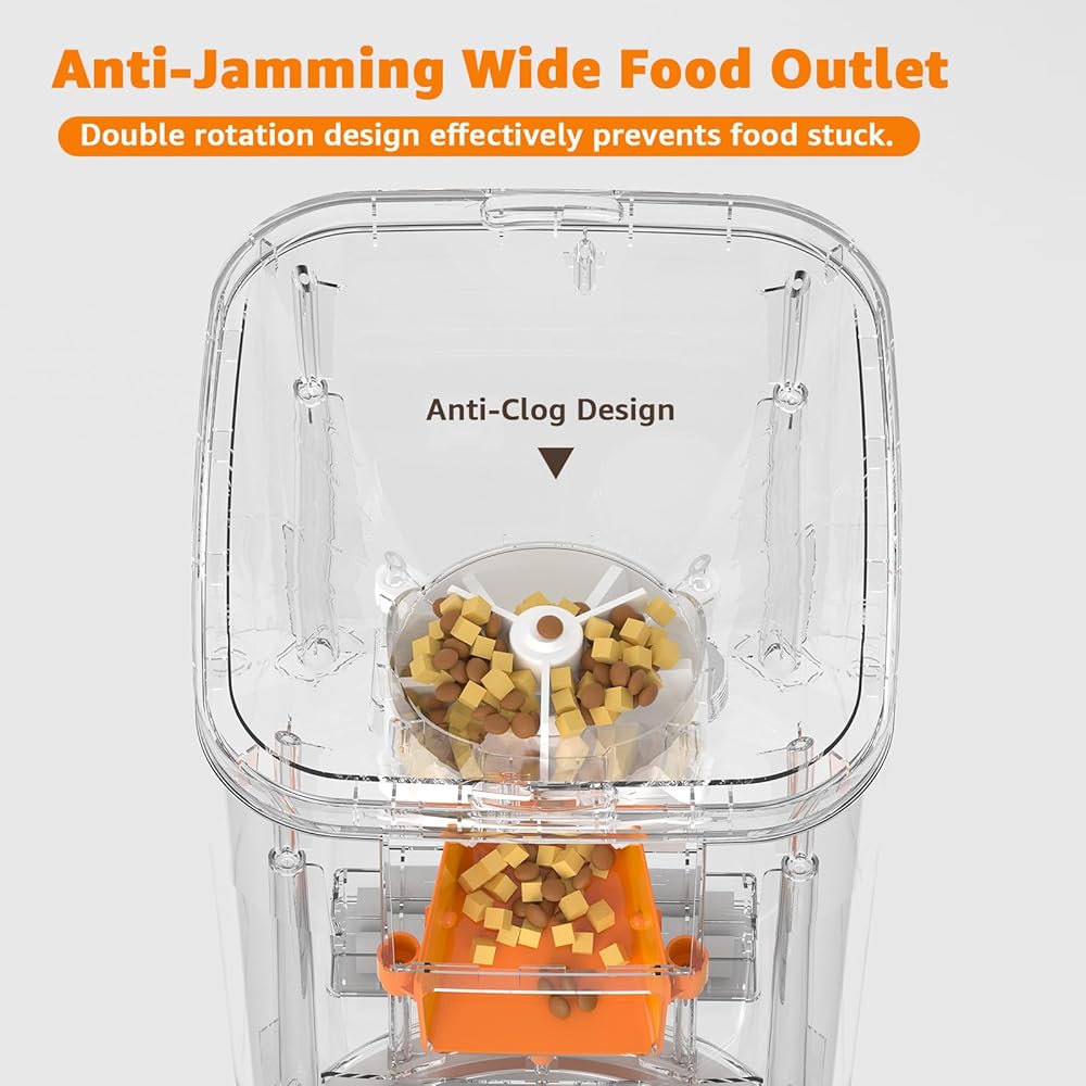 【تصميم مزدوج مضاد للانسداد】يتميز جهاز تغذية الحيوانات الأليفة هذا بنظام دوار مزدوج يضمن توزيعًا دقيقًا للأجزاء وتسليم الوجبات بسلاسة. تتيح لك الحاوية الشفافة مراقبة كمية الطعام، مما يجعلها مثالية لأطعمة الحيوانات الأليفة المجففة بالتجميد مقاس 1-15 مم. مع نظام نضارة ثلاثي، يمنع الرطوبة، ويحافظ على الطعام جافًا وطازجًا. سوف يستمتع حيوانك الأليف بكل قضمة من الطعام الطازج.